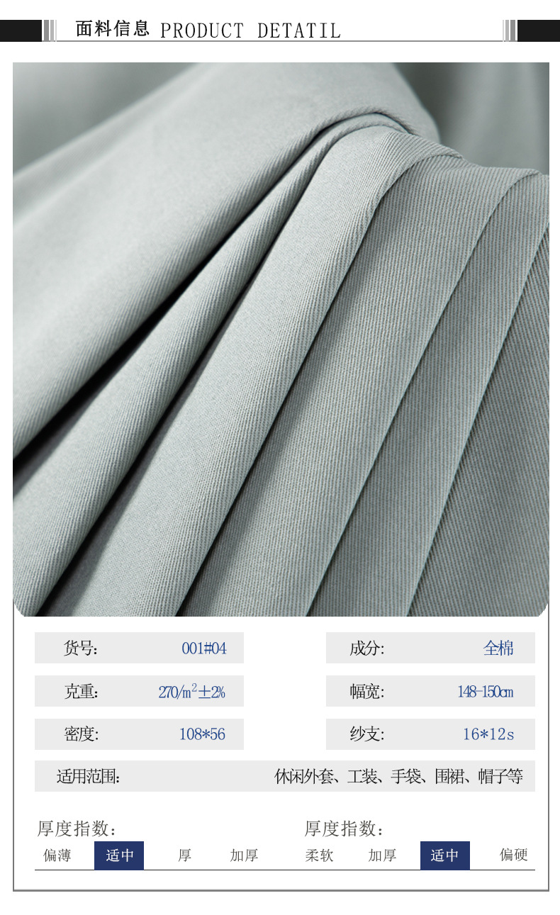 32支中厚高密斜纹水洗棉梭织纱卡面料休闲裤衬衫斜纹纯棉面料