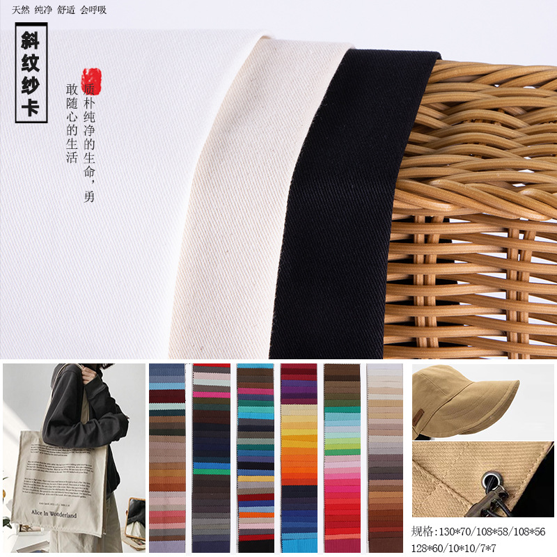 现货108*58纱卡斜纹纯棉面料布帽子工装斜纹棉布料布匹梭织面料