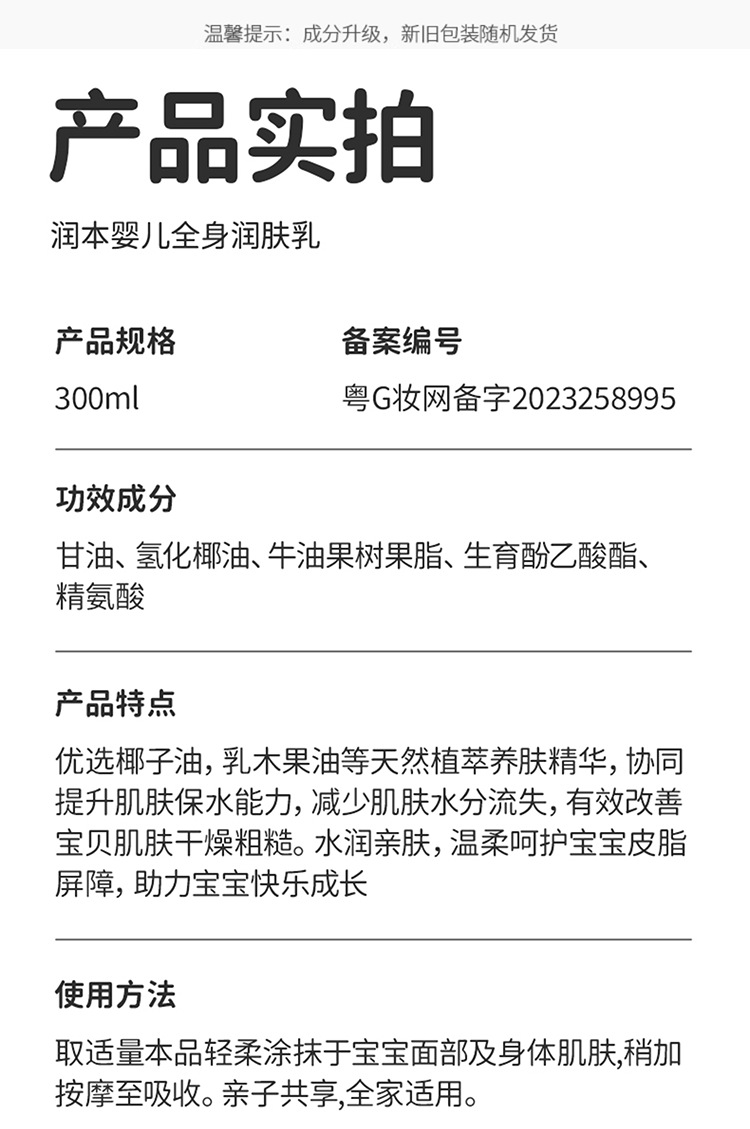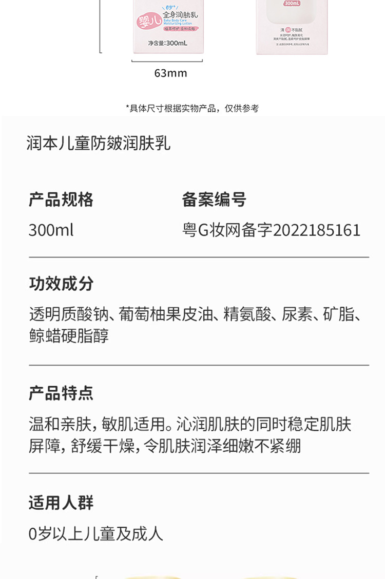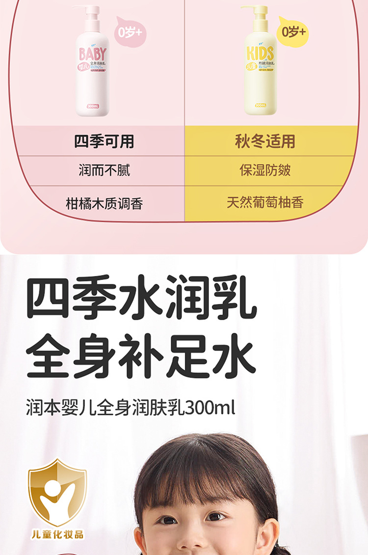 规格 婴儿全身润肤乳100ml-四季款,婴儿全身润肤乳300ml-四季款,儿童防皴润肤乳100ml-秋冬款,儿童防皴润肤乳300ml-秋冬款