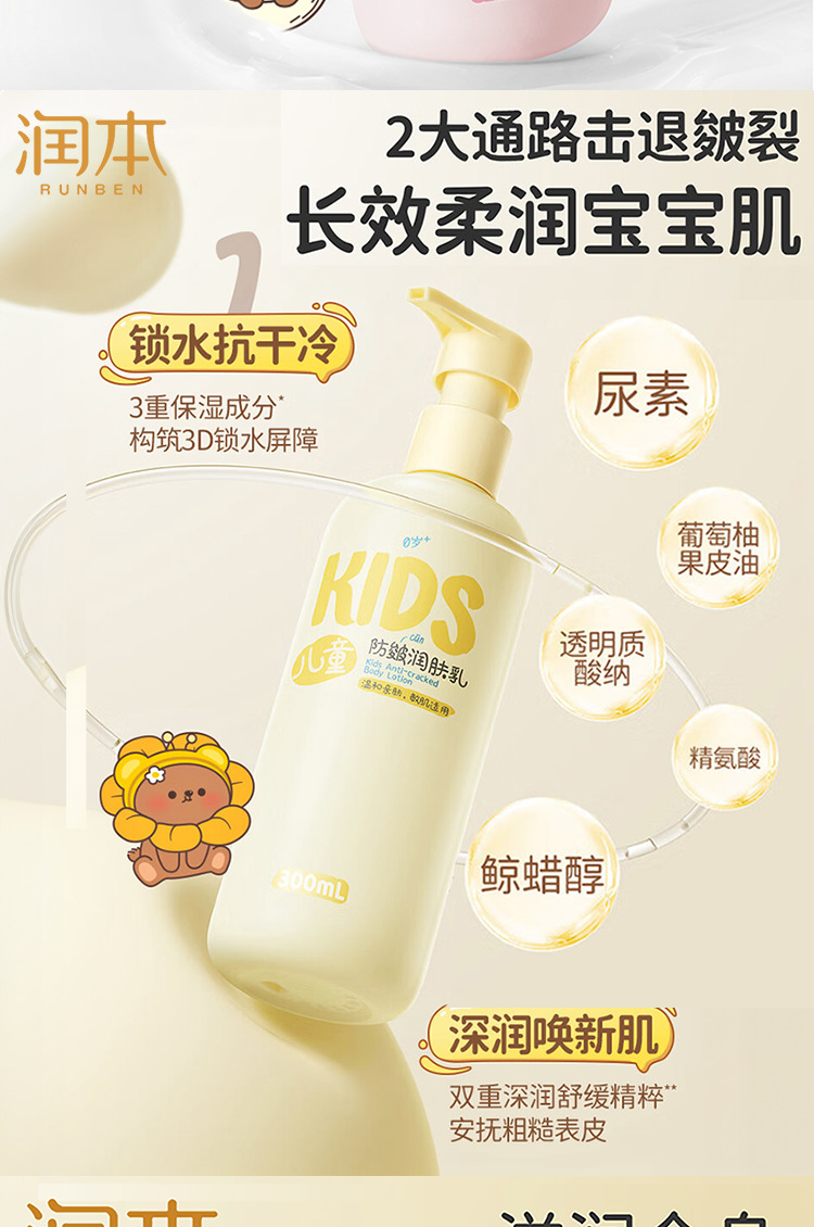 润本儿童身体乳润肤乳不油腻宝宝婴儿秋冬保湿乳护肤霜正品
