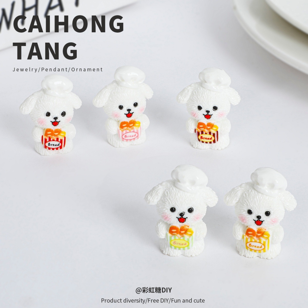 卡通树脂实色厨师帽小狗公仔 造型饰品配件车载桌面摆件材料批发