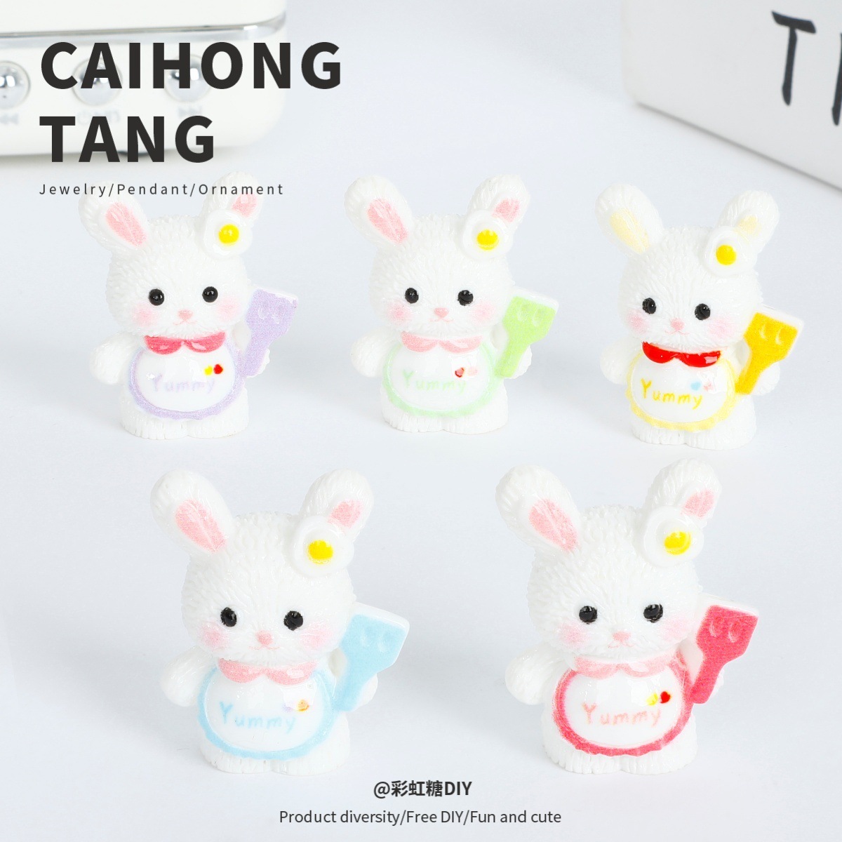树脂可爱烹饪小兔子公仔 热销批发DIY饰品配件草坪微景观造景摆件