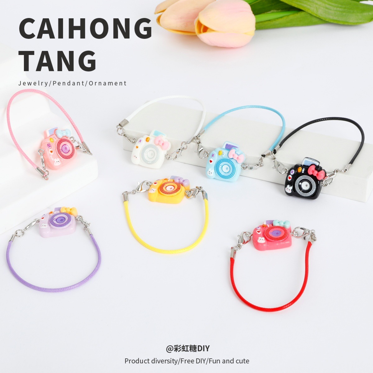 树脂饰品创意上钉挂绳彩色迷你照相机 批发彩色DIY配饰小摆件