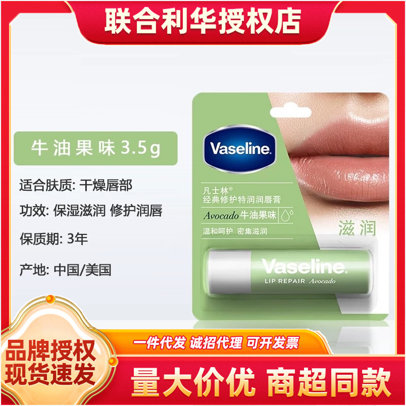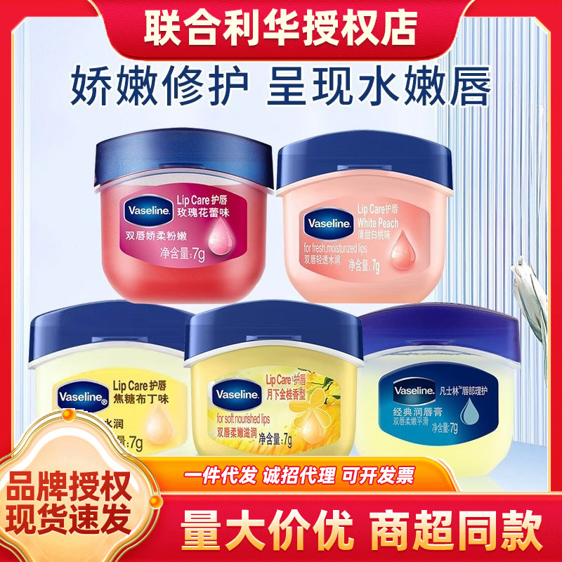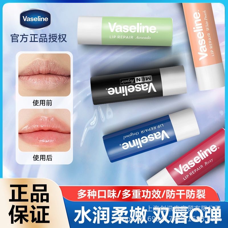 凡士林润唇膏保湿滋润补水防干裂玫瑰白桃牛油果原味护唇一件代发