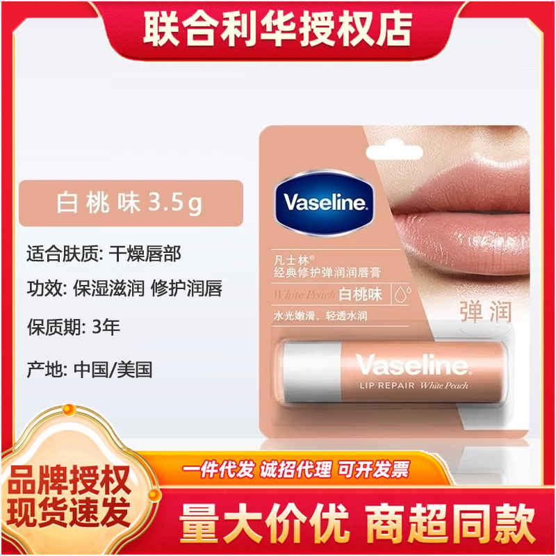 凡士林修护润唇膏3.5g清甜白桃味 男女通用深层补水滋养淡化唇纹