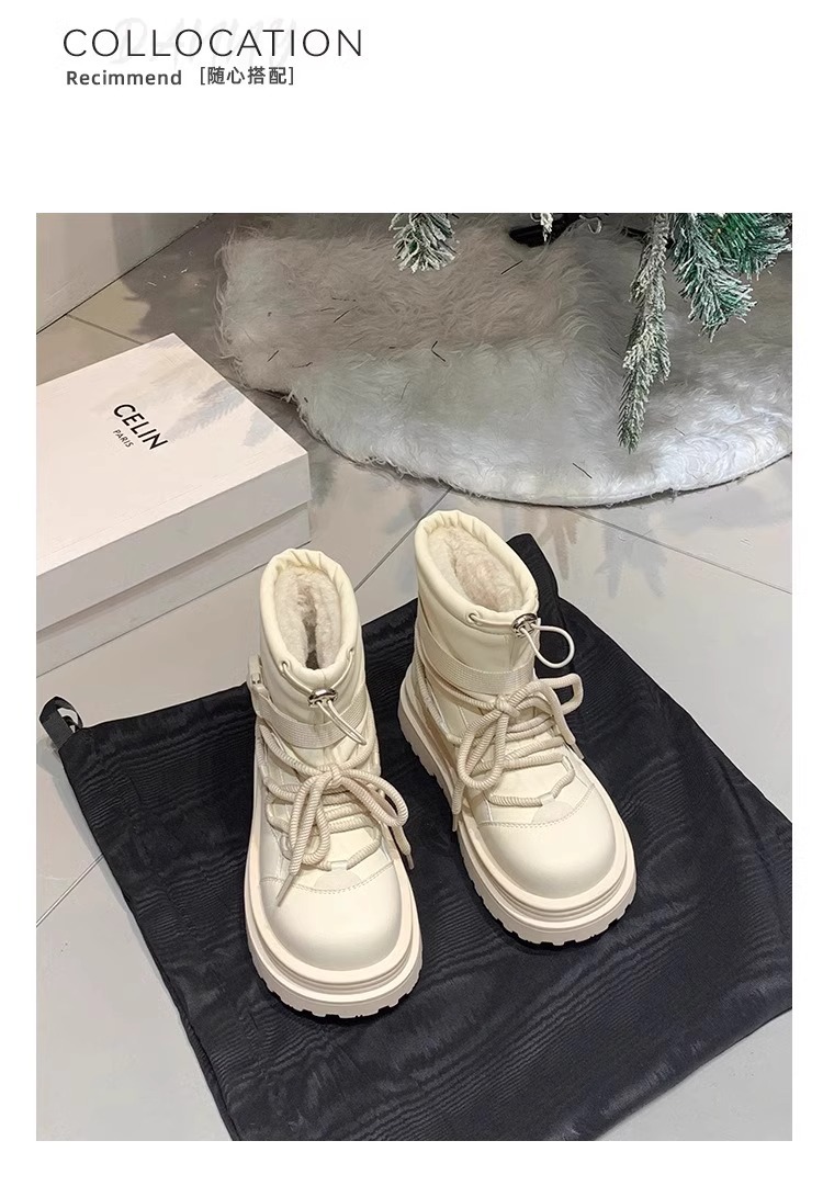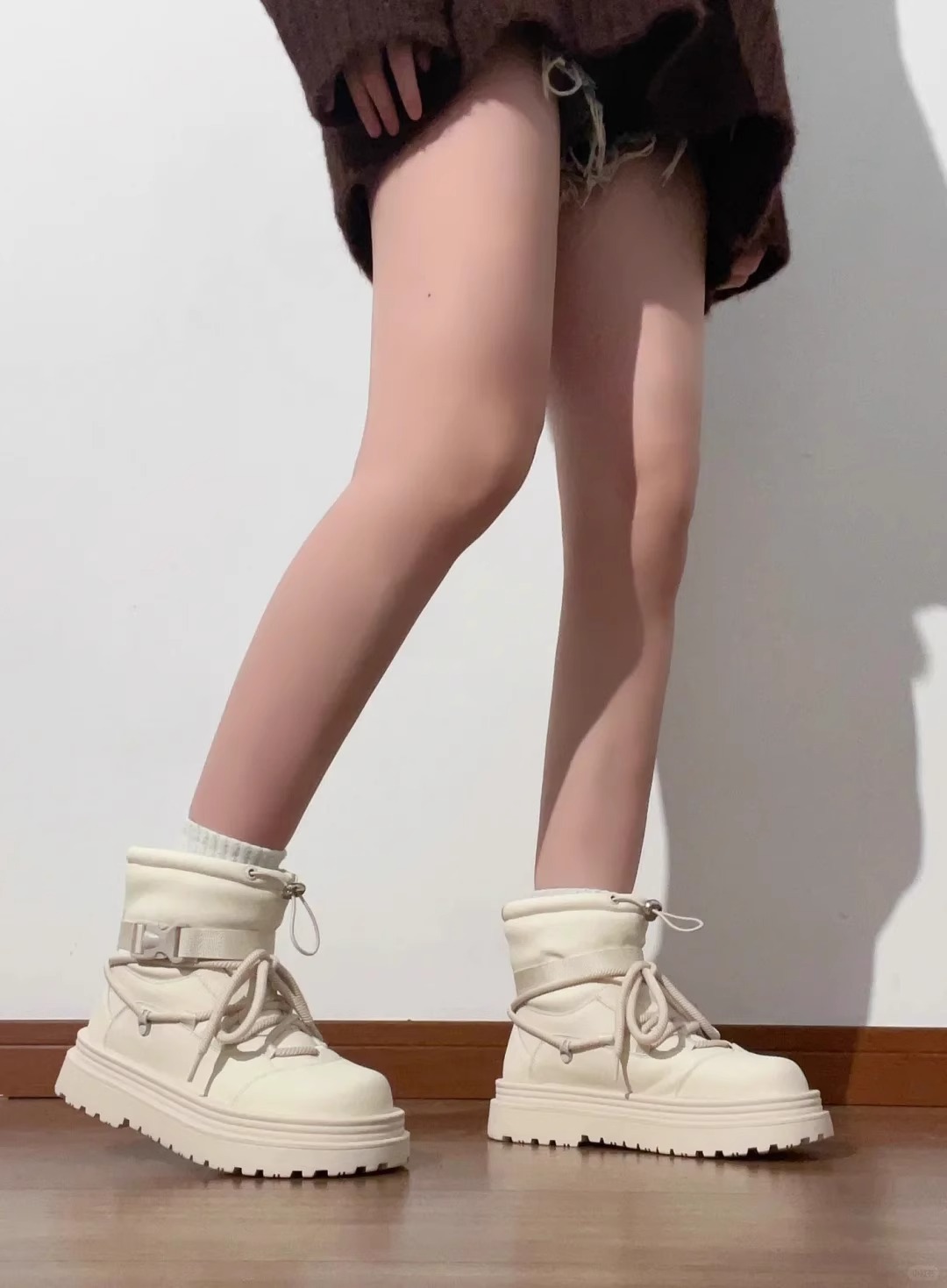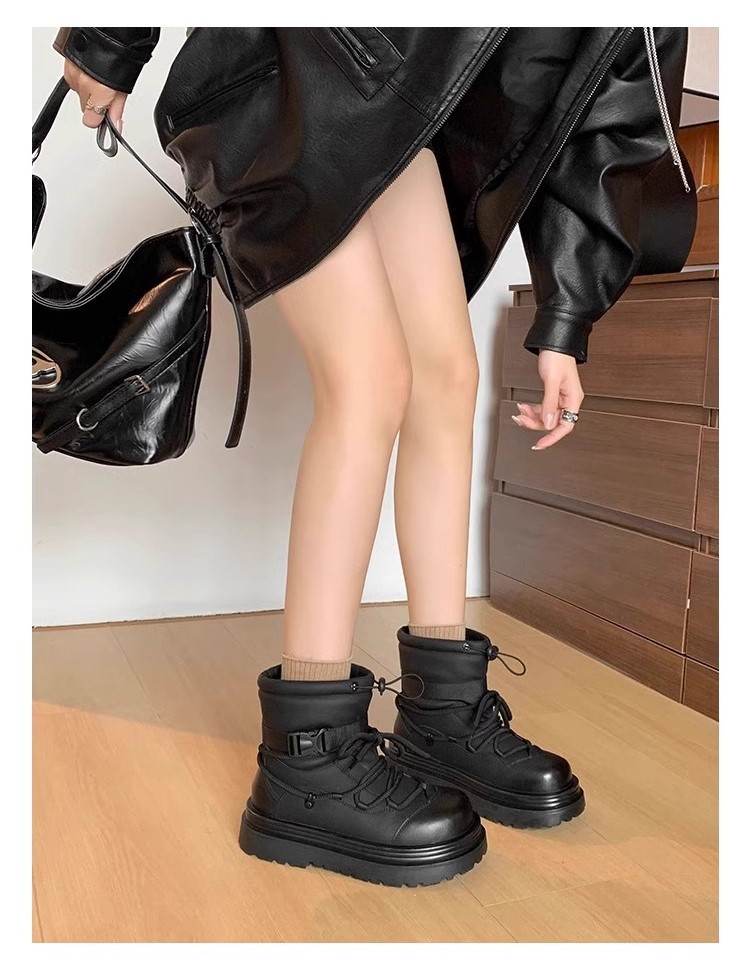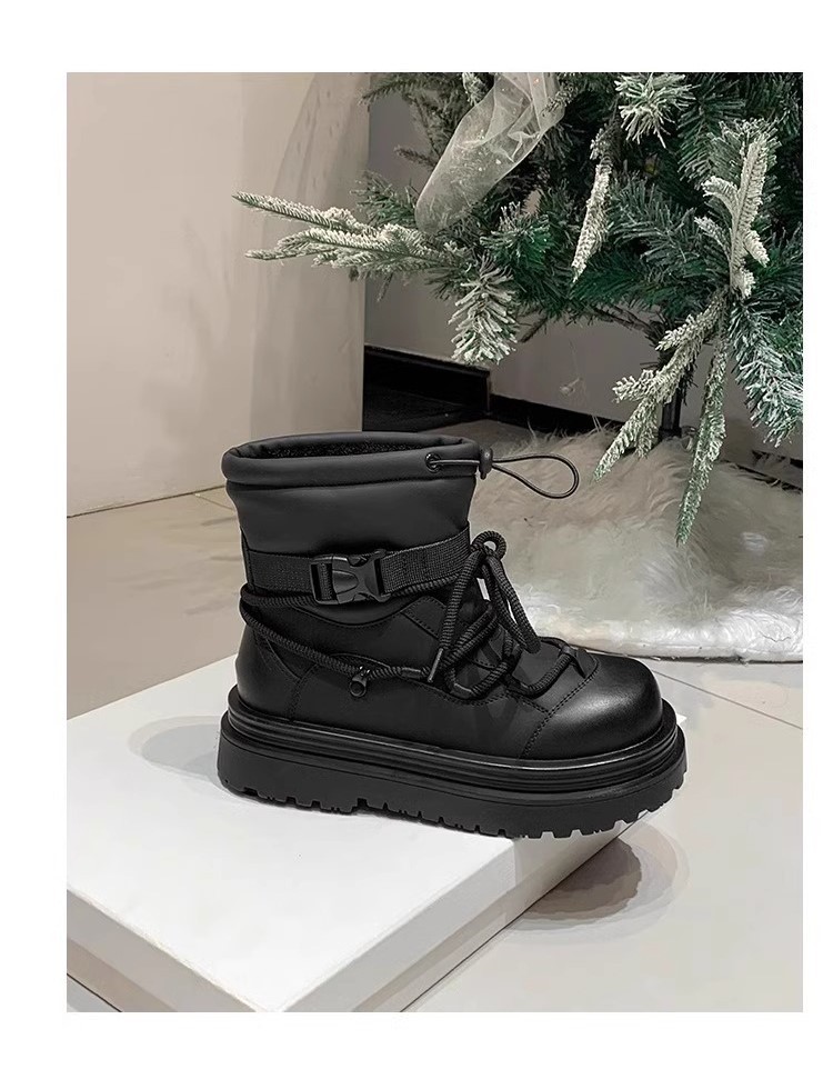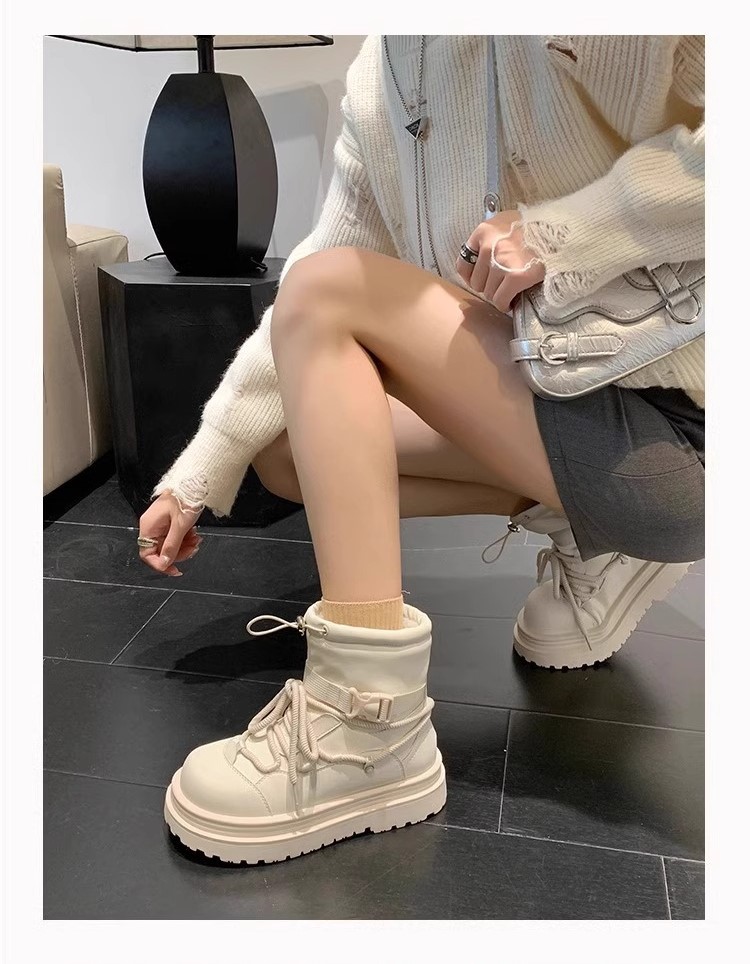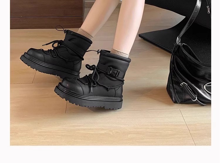2025年新作 レディース スノーブーツ 冬用 裏起毛 厚底 暖かい 東北風 大きな綿入れシューズ 厚底マーティンブーツ ショートブーツ