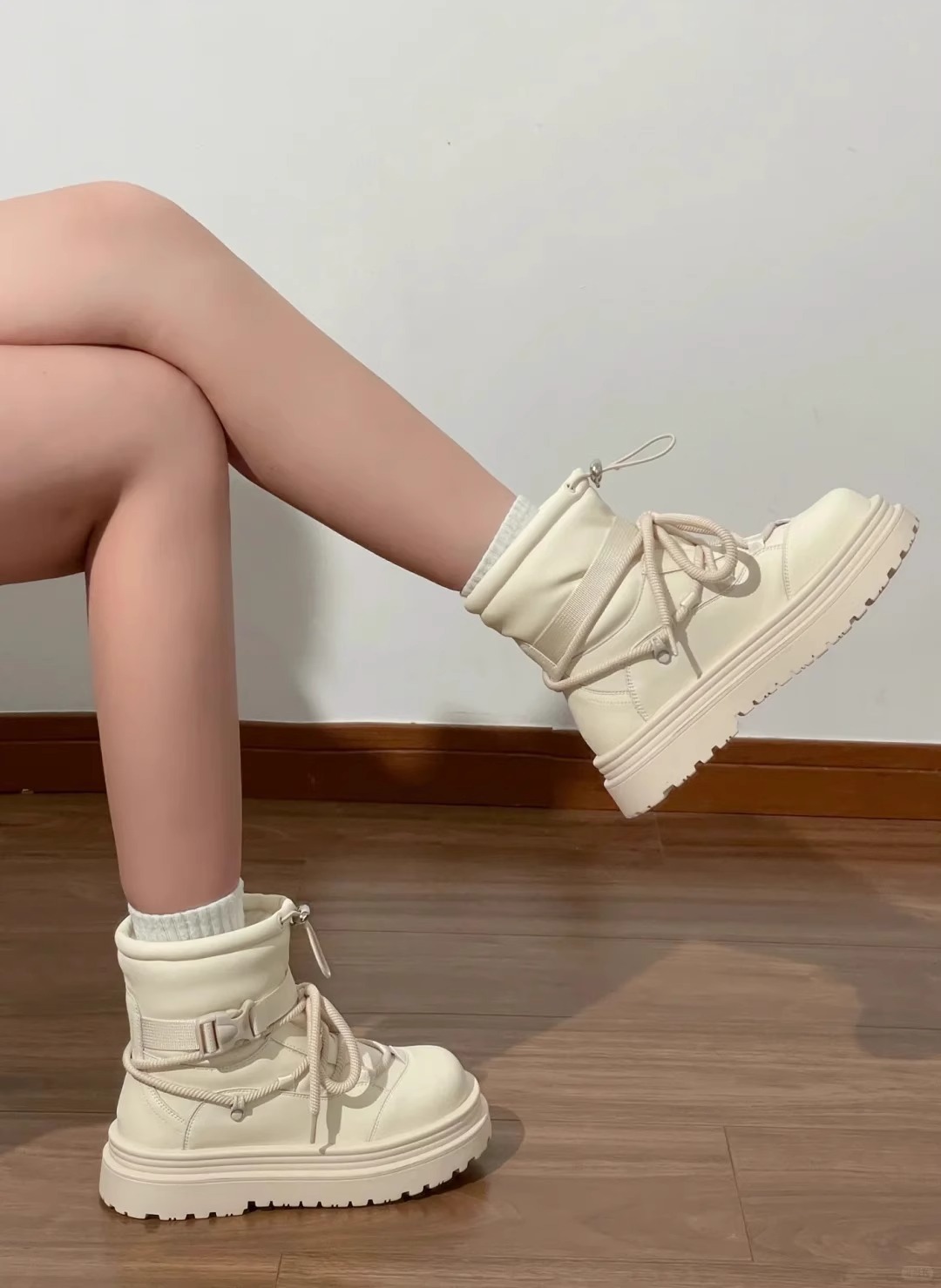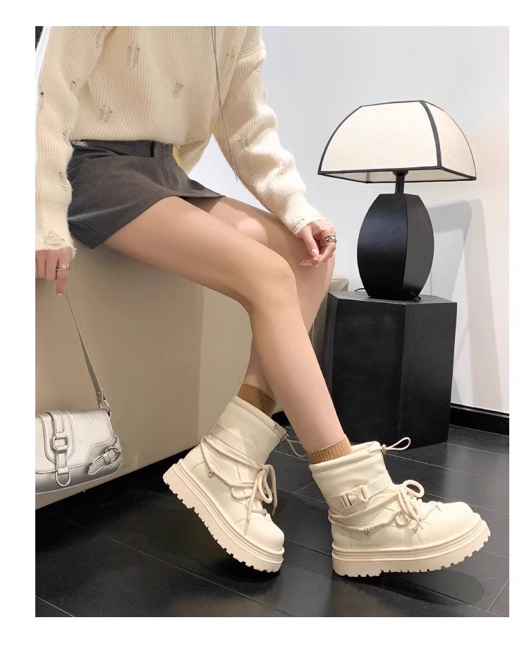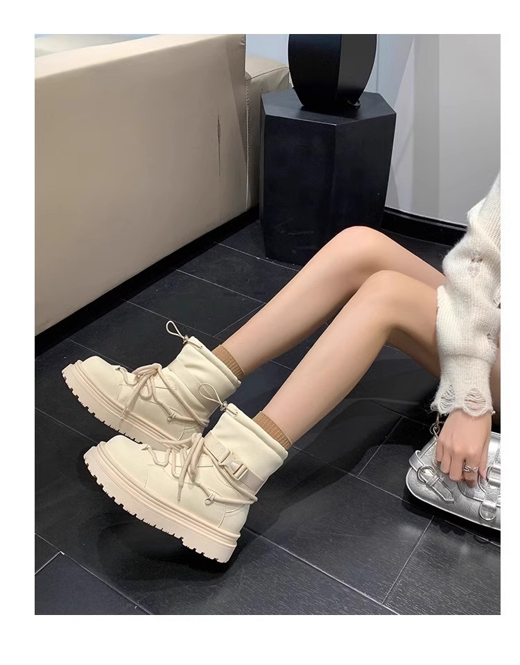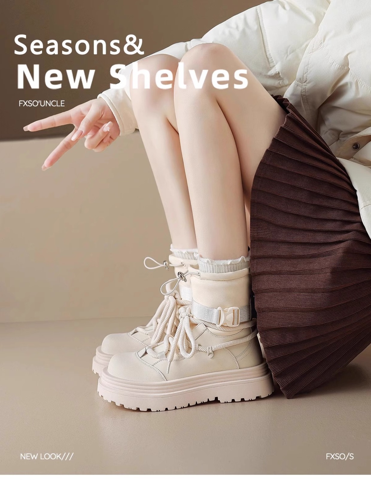 2025年新作 レディース スノーブーツ 冬用 裏起毛 厚底 暖かい 東北風 大きな綿入れシューズ 厚底マーティンブーツ ショートブーツ