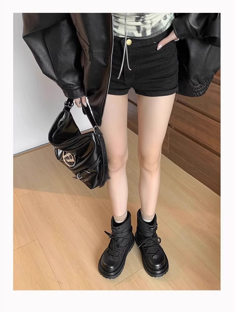 今年人気の女性用ショートブーツ2025秋冬新作本革黒超人気パンツブーツ厚底おしゃれショートブーツ