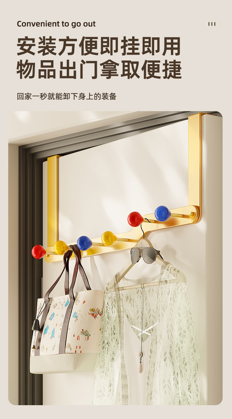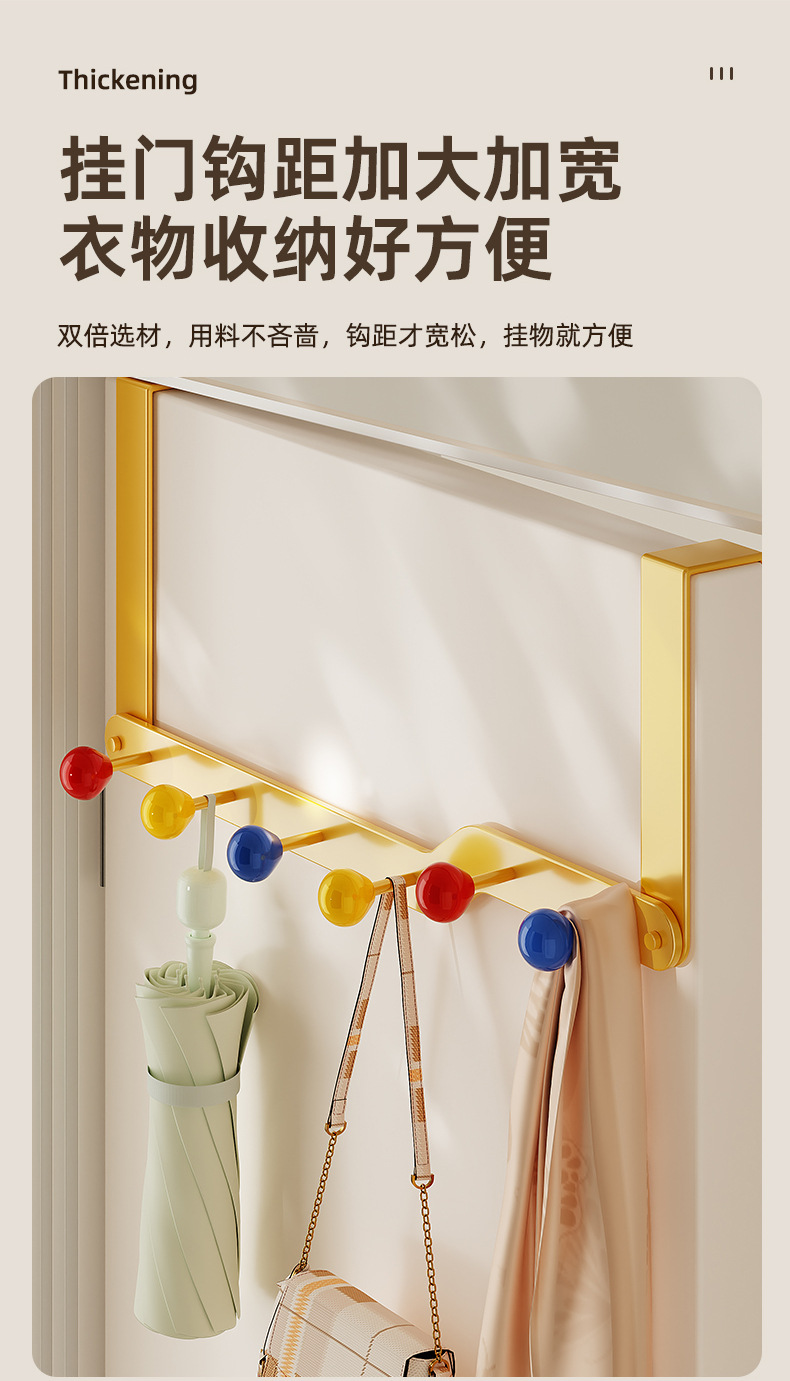 儿童房多巴胺门后挂衣钩免打孔门上挂衣架创意置物架铁艺门后挂勾