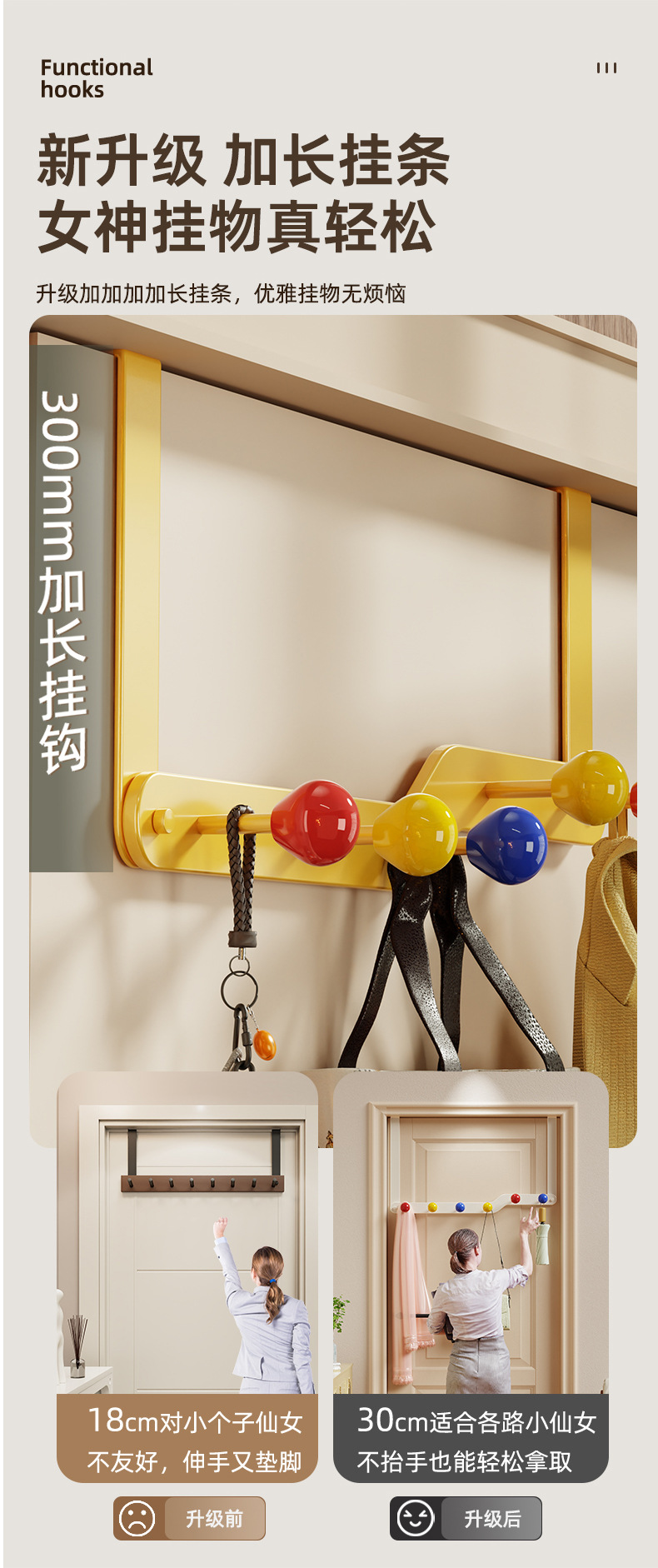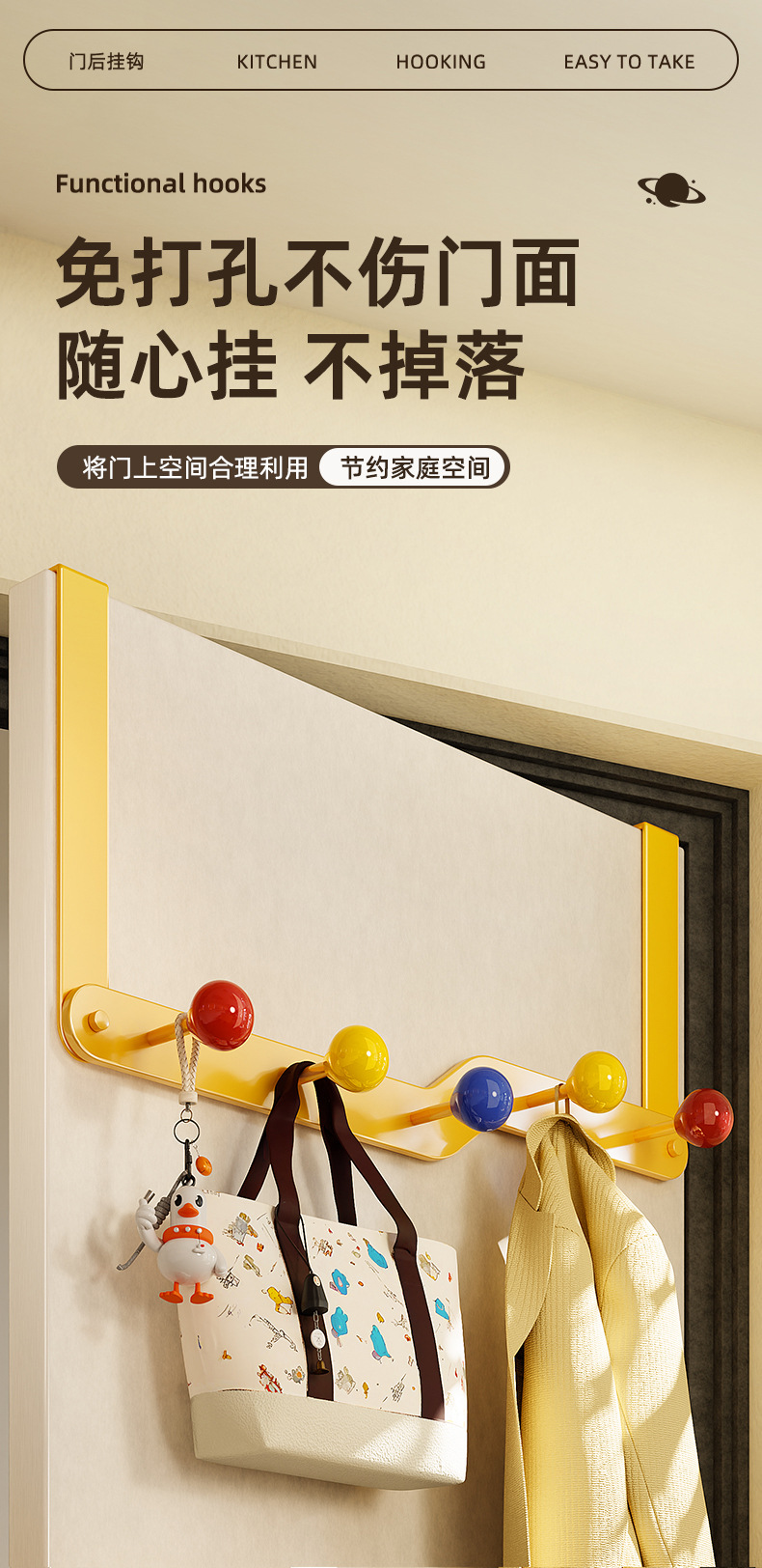 多巴胺门后挂钩衣服挂架卧室挂钩壁挂墙上免打孔强力浴室收纳神器