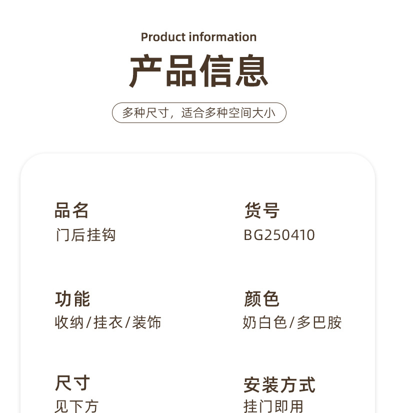 不伤衣免打孔门后挂钩奶油原木风门上挂衣钩卧室挂门款衣物收纳架