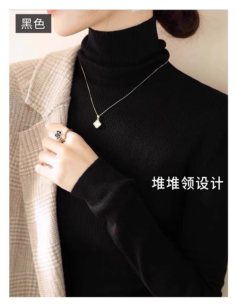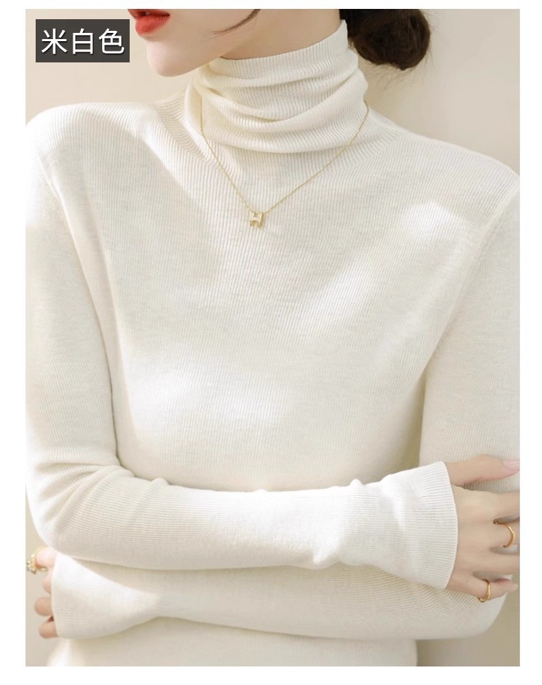 太ったmmの大きいサイズの白い半高襟のニットの女性の修身の頭のセーターの薄いタイプの秋冬の中で襟の底のシャツを掛けます。