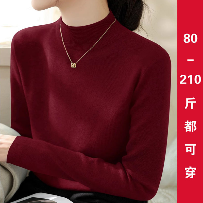 大码安哥拉红半高领内搭针织衫女秋冬新款高级感长袖打底胖mm上衣