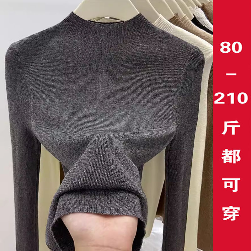 プラスサイズフレンチグレーハーフタートルネックインナーセーター女性の秋と冬の新しいハイエンド長袖ボトムストップファットmm