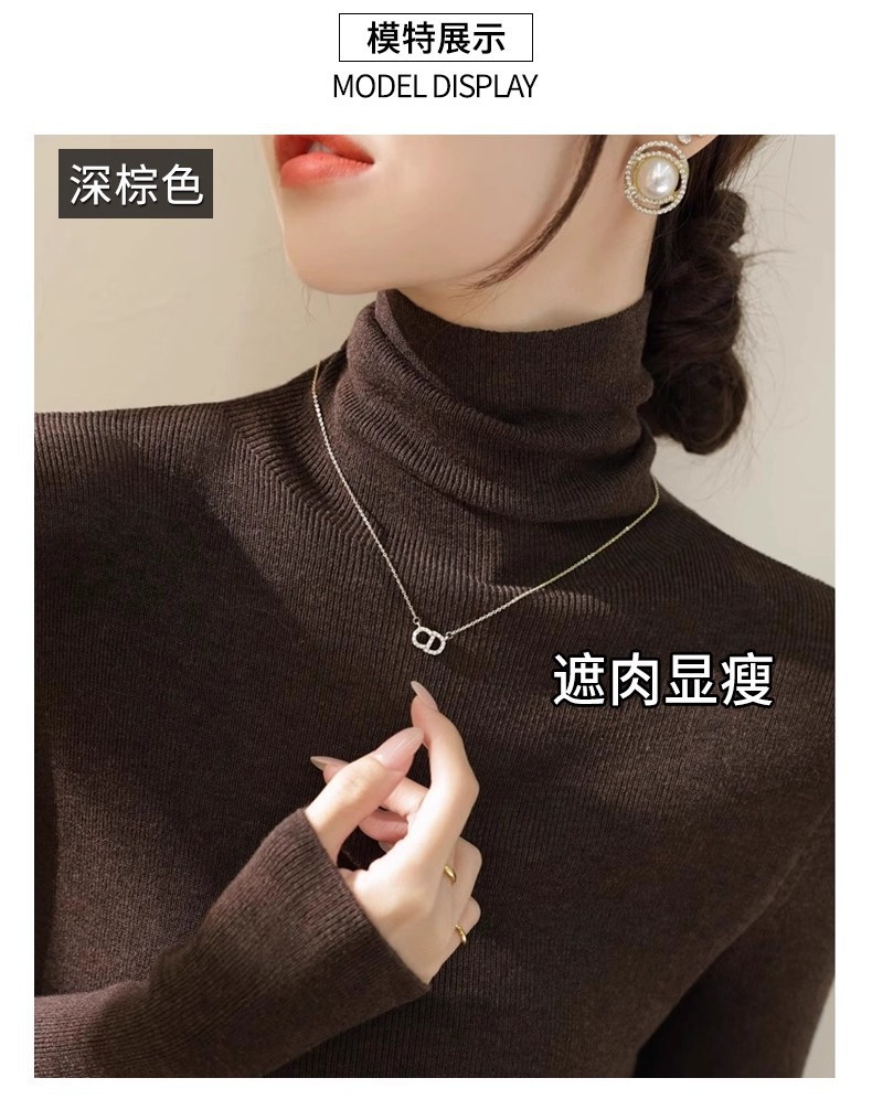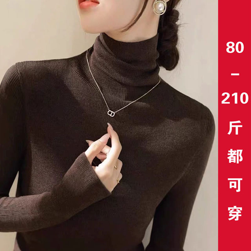 大码慵懒风咖色堆堆领套头内搭针织打底衫毛衣女秋冬高领长袖上衣