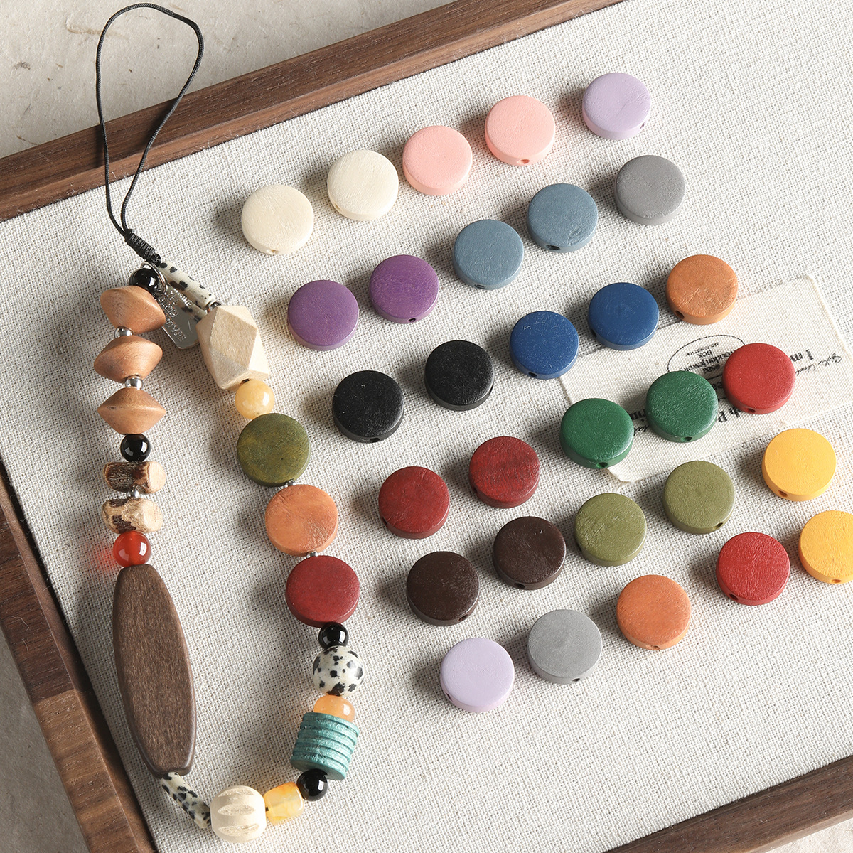 モランディ染色木製円餅ビーズビーズブレスレットネックレス携帯電話チェーンビーズdiy部品材料ビーズ