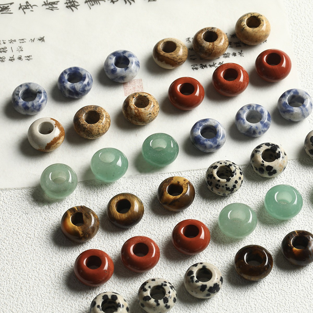 【平安ボタン】レトロ中国式天然水晶瑪瑙大穴平珠そろばん玉diy編みブレスレット