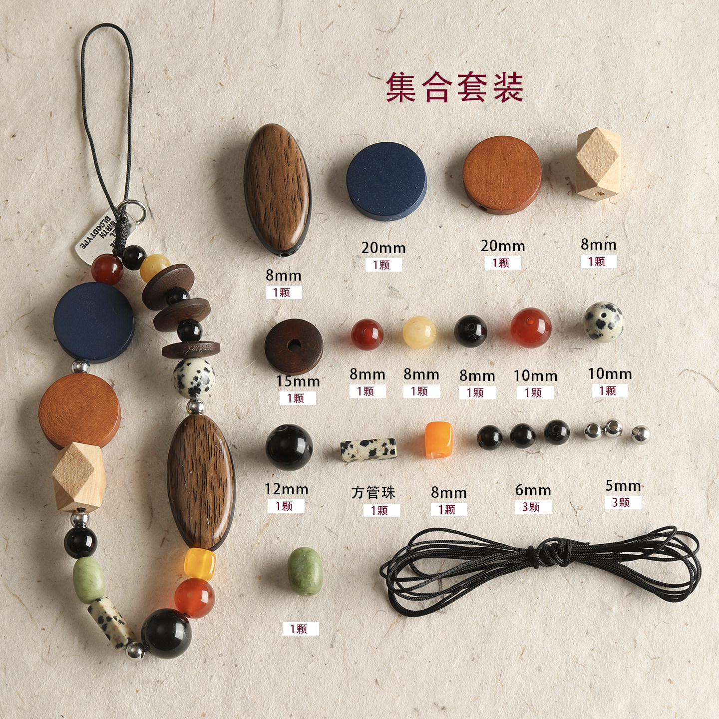 颜色 #1 需要自己穿(手机链一套),#2 树脂吊孔圆片 随机(1颗),#3 树脂吊孔方片 随机(1颗),#4 树脂直孔胖珠 随机(1颗),#5 树脂圆环 随机(1颗),#6 树脂直孔扁珠 随机(1颗),#7 树脂吊孔米环珠 随机(1颗),#8 树脂圆片 随机(1颗),#9 方形木片国风绿 随机(1颗),#10 非正圆咖色木片 随机(1颗),#11 三角木珠国风绿 随机(1颗),#12 咖色20mm正圆木片 随机(1颗),#13 深蓝20mm正圆木片随机(1颗),#14 深咖瓜子木片 随机(1颗),#15 黄色瓜子木片 随机(1颗),#16 黄色星星 随机(1颗),#17 飞碟珠14mm 随机(1颗),#18 菱形原木珠 随机(1颗)