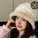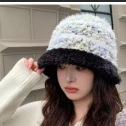 秋冬新款帽子女简约毛绒显脸小渔夫帽防寒百搭小香风拼色针织盆帽