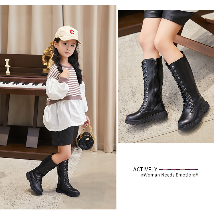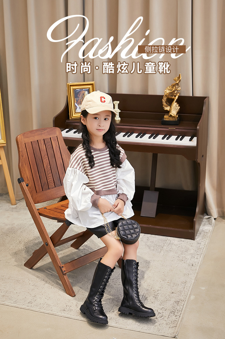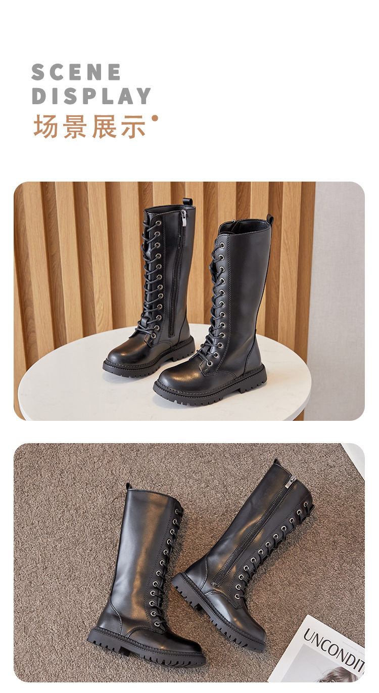 女童靴子不过膝秋冬季高筒长靴走秀演出单靴儿童时尚公主高帮靴简