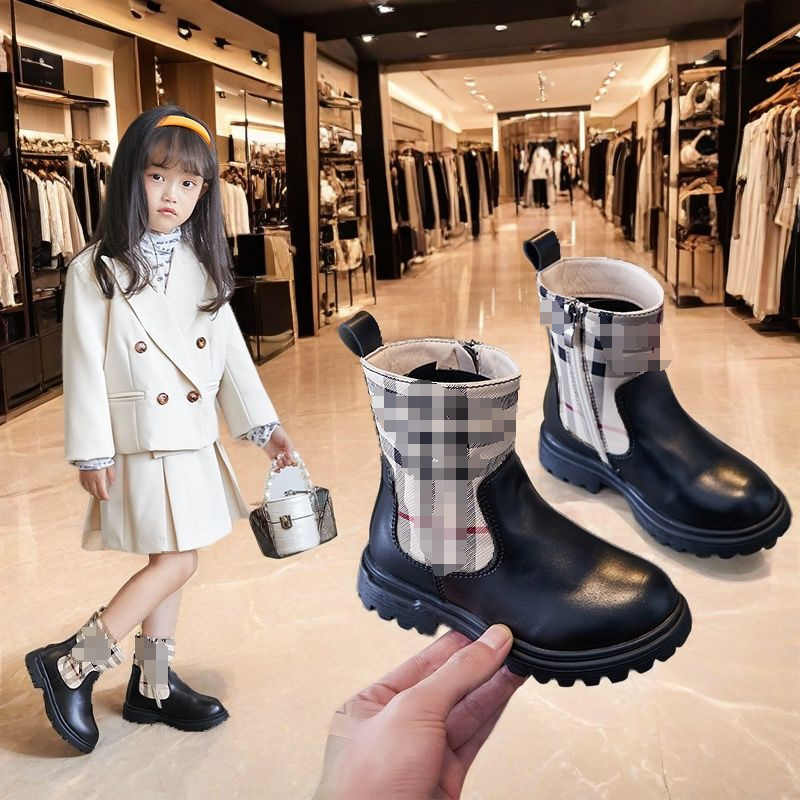 女の子フリースブーツ2025新しいハイトップコットンブーツプリンセスブーツ小さな女の子ブーツ中型および大型子供スタイルマーティンブーツ