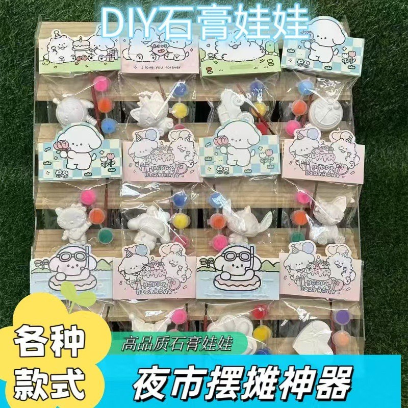 夜市摆摊涂鸦石膏娃娃创业DIY彩绘填色立体石膏白胚公仔玩具