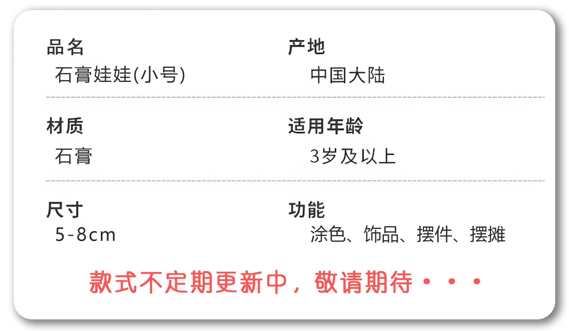 规格 石膏娃娃,小号,款式上百种,高度5-8cm,款式随机发