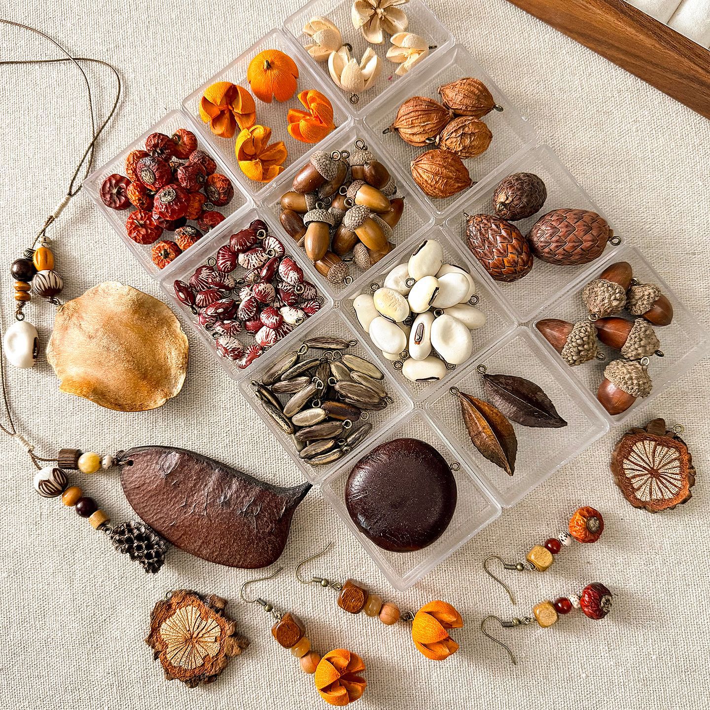 颜色 #1 进口随形长条木珠 随机(1颗),#2 深咖胖木珠 随机(1颗),#3 原木胖飞碟 随机(1颗),#4 松木大枣珠 随机(1颗),#5 小号原木方菱形 10mm 随机(1颗),#6 原木长方菱形珠 随机(1颗),#7 深咖螺纹珠13mm 随机(5颗),#8 进口小胖木珠 随机(1颗),#9 白色螺纹珠13mm 随机(5颗),#10 树枝珠 随机(1颗),#11 梯形木头珠 随机(1颗),#12 复古橙大胖珠 随机(1颗)