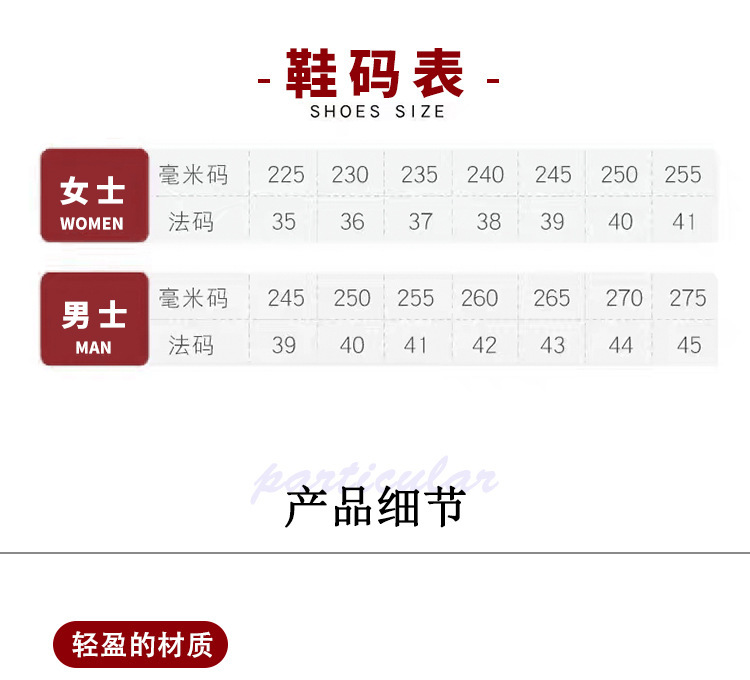 颜色 G03【男】单鞋,G03【女】红-单鞋,G03【女】黑-单鞋,【G01】女【系带】黑色,【G01】女【系带】红色,【G01】【系带】男,普通纸盒-10个,【彩盒-加厚】10个