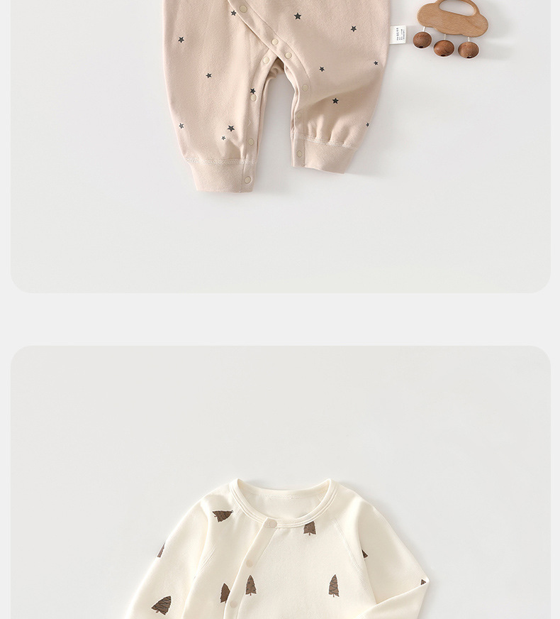 颜色 奶茶粉星星连体衣,月光白圣诞树连体,可可棕企鹅连体