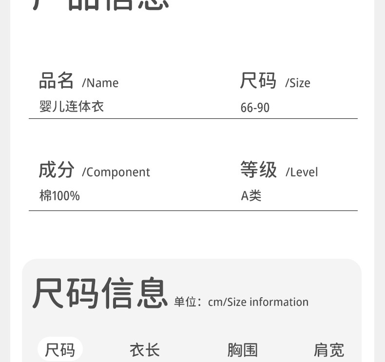 产品类别 连身衣、爬服