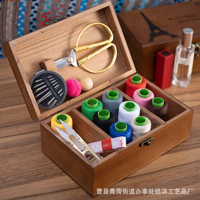 現物裁縫箱実木家庭用分格裁縫道具収納箱木製空箱結婚証明書木箱