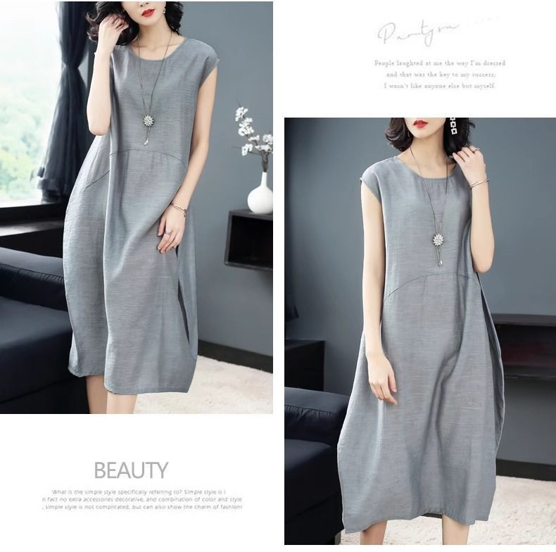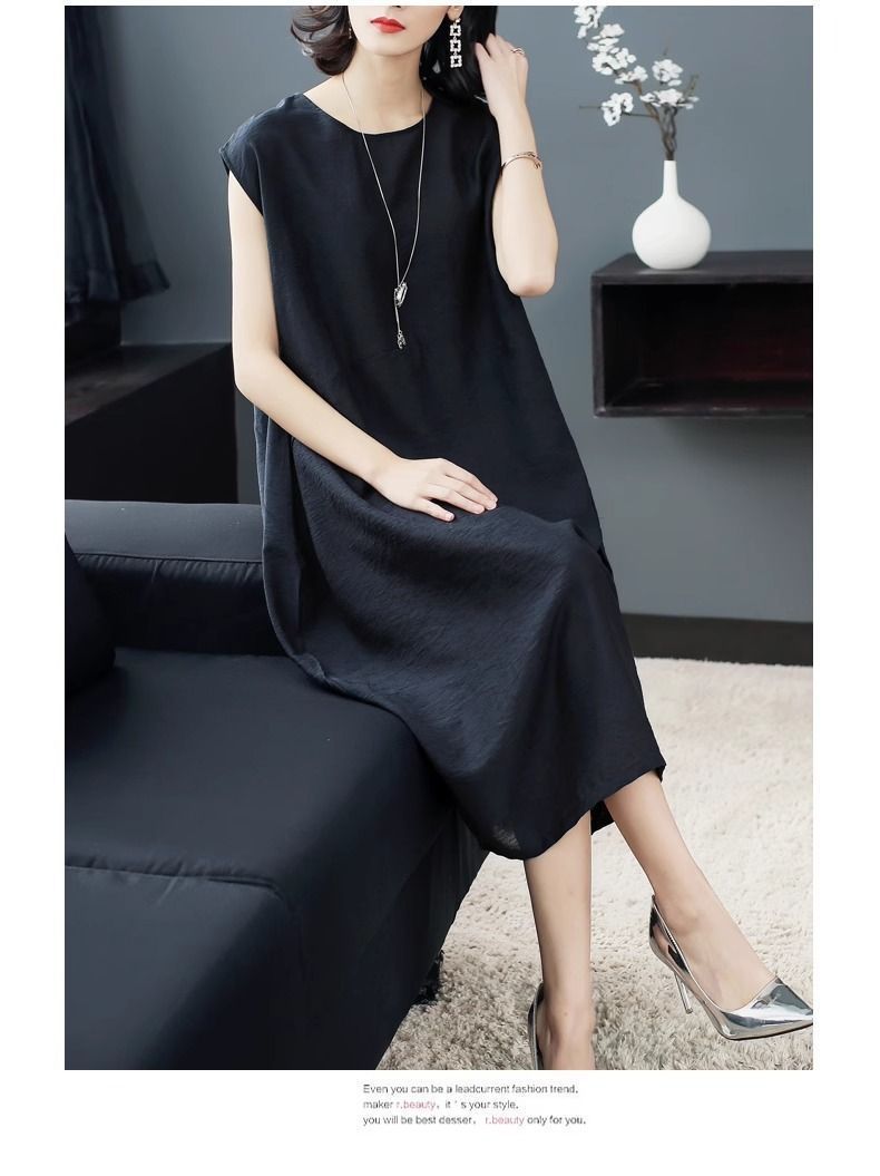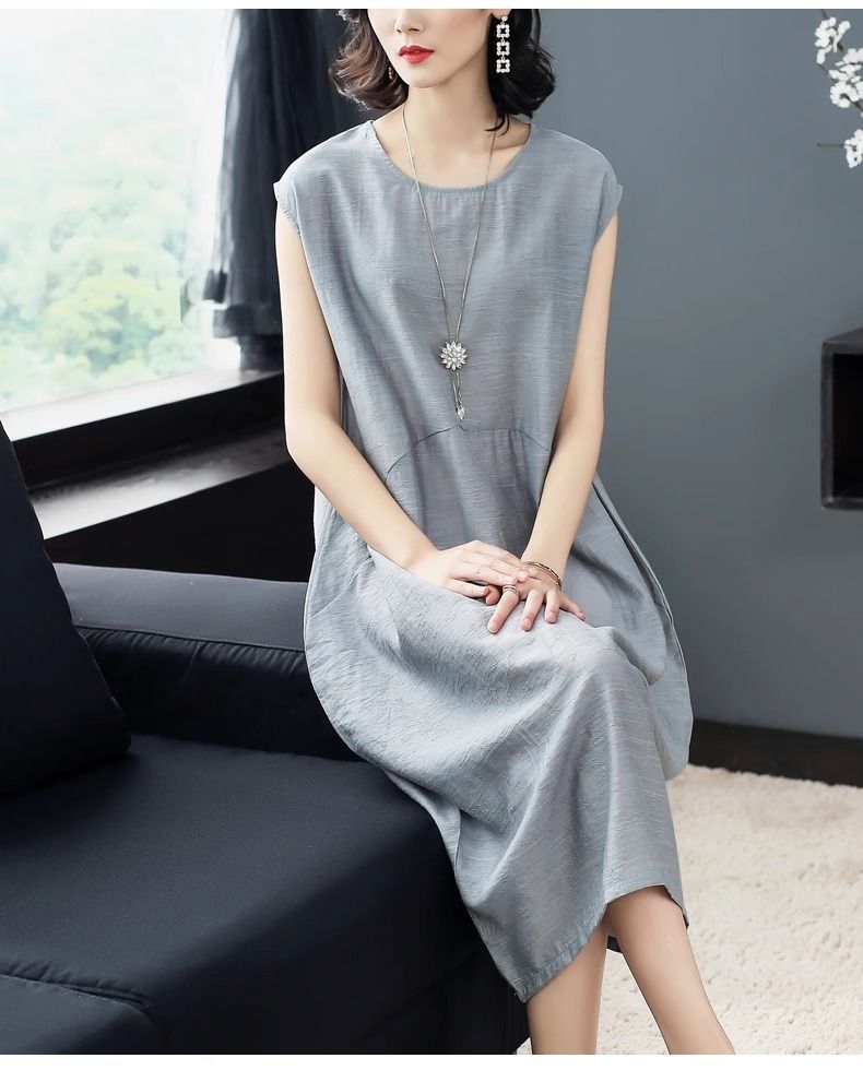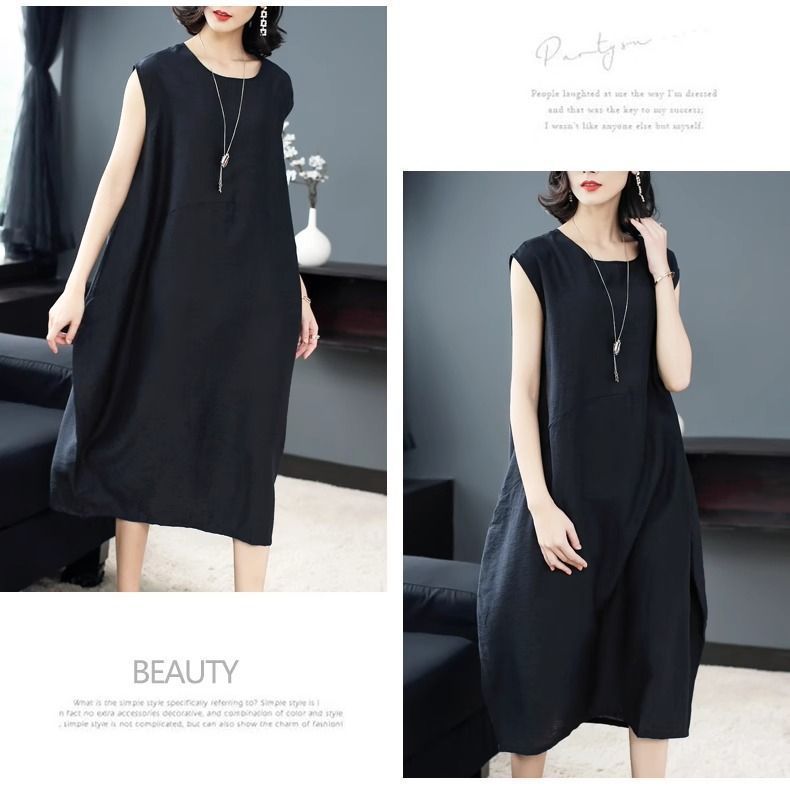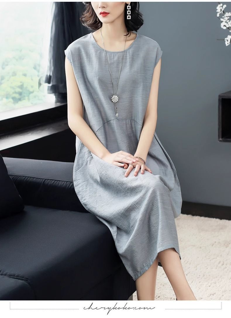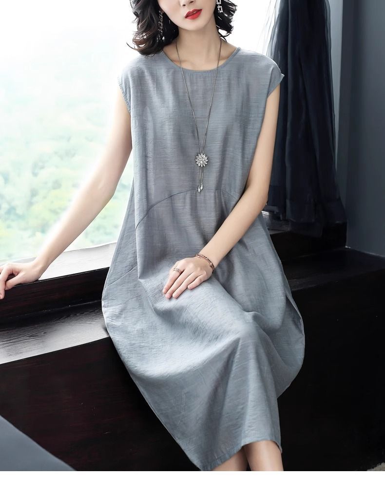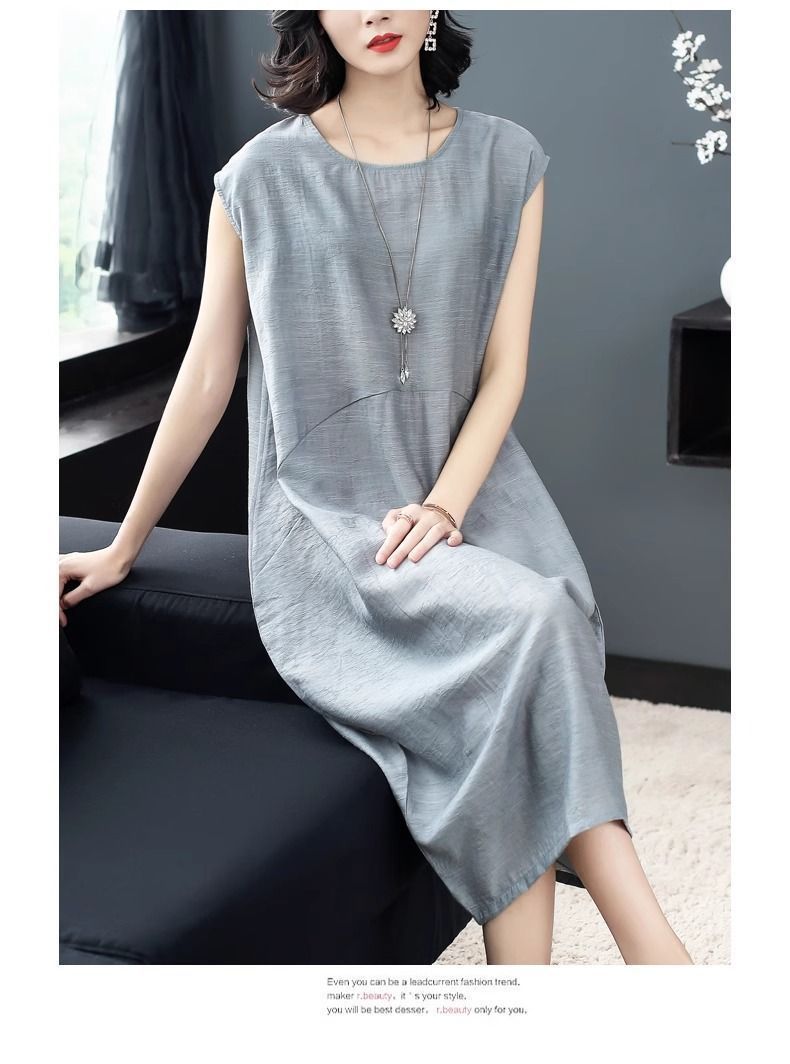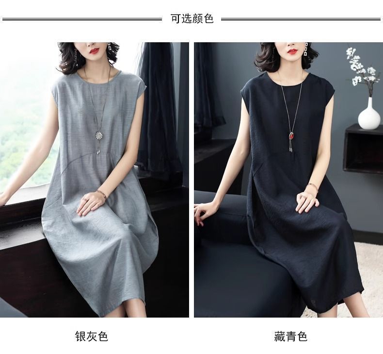 跨境夏季新款纯色棉麻长款无袖背心连衣裙休闲宽松遮肉背心长裙女