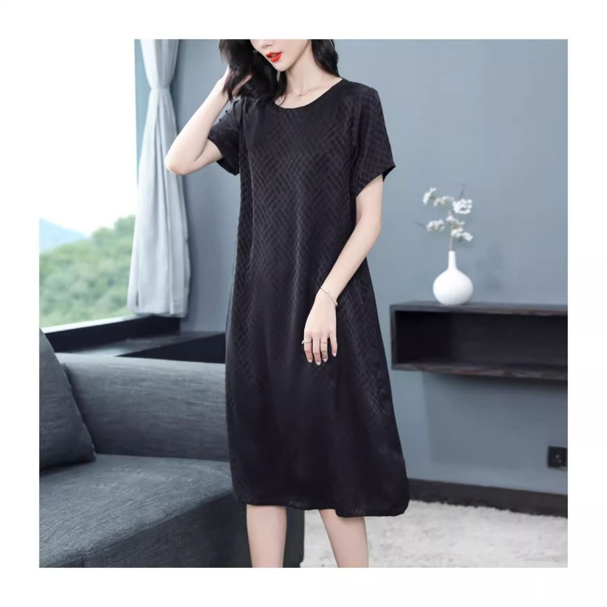 紫色の半袖ドレス夏の新しい大きいサイズの女性のファッショナブルな太ったルーズスリムストレートミドル丈スカート