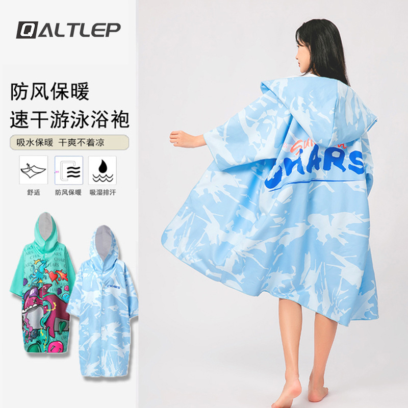 水泳バスローブ吸水バスタオル交換速乾マント帽子付き男女マント運動日焼け止めビーチタオル