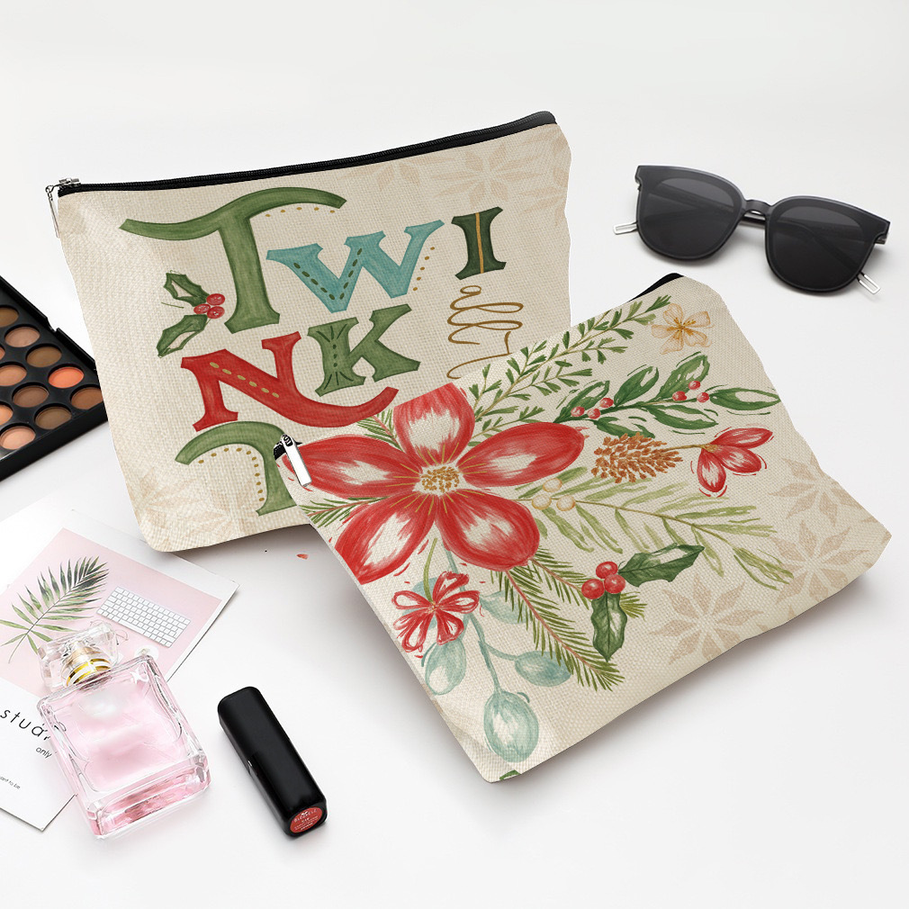 クロスボーダー Amazon ジッパー収納袋クリスマスリネンバッグポータブル化粧品袋 1 バッチ収納袋