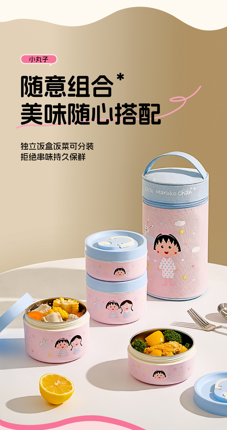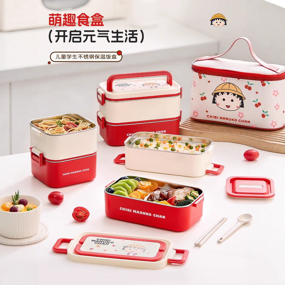 樱桃小丸子304不锈钢便当盒多层饭盒学生午餐盒上班汤罐保温