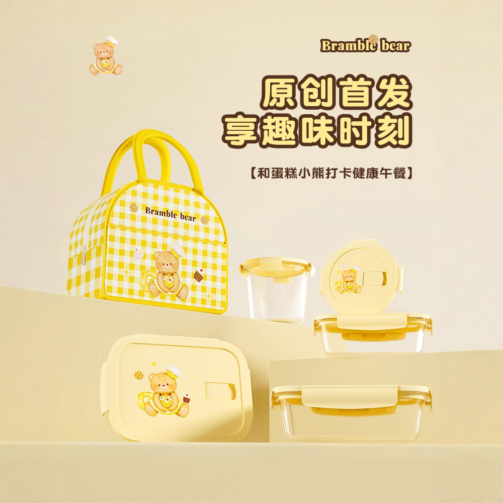希楽ボタンガラス弁当箱電子レンジ加熱専用碗サラリーマン弁当箱セット弁当箱fx