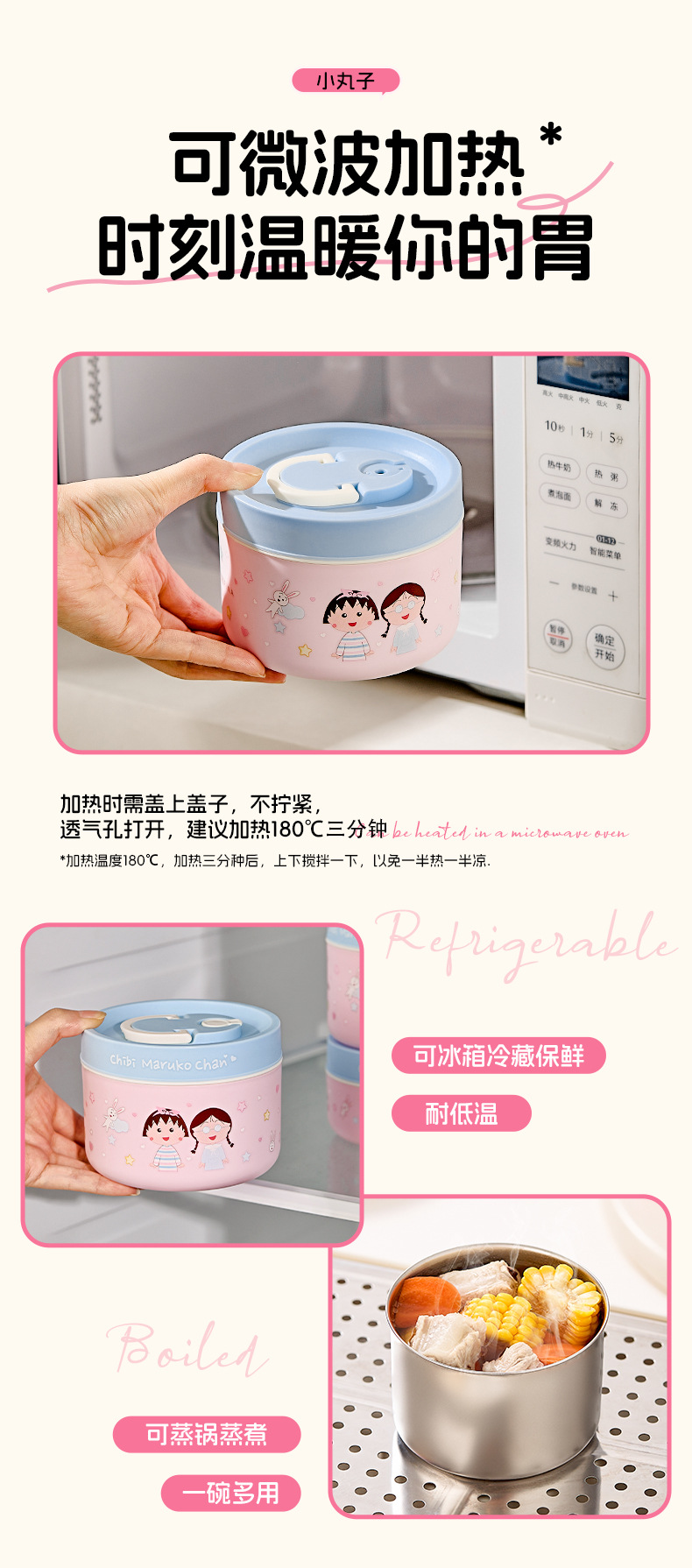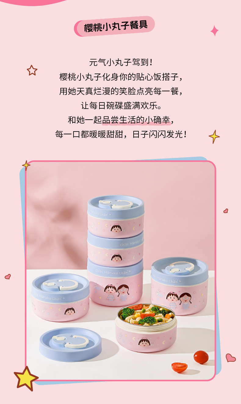 希乐扣樱桃小丸子不锈钢饭盒上班族带饭餐盒食品级学生专用便当盒