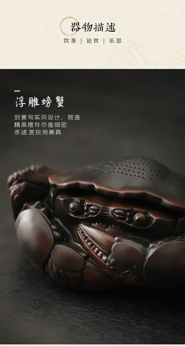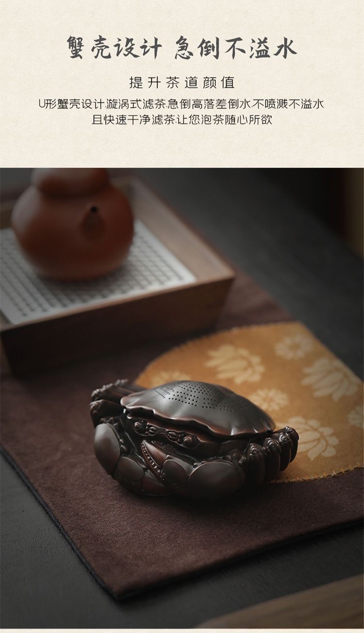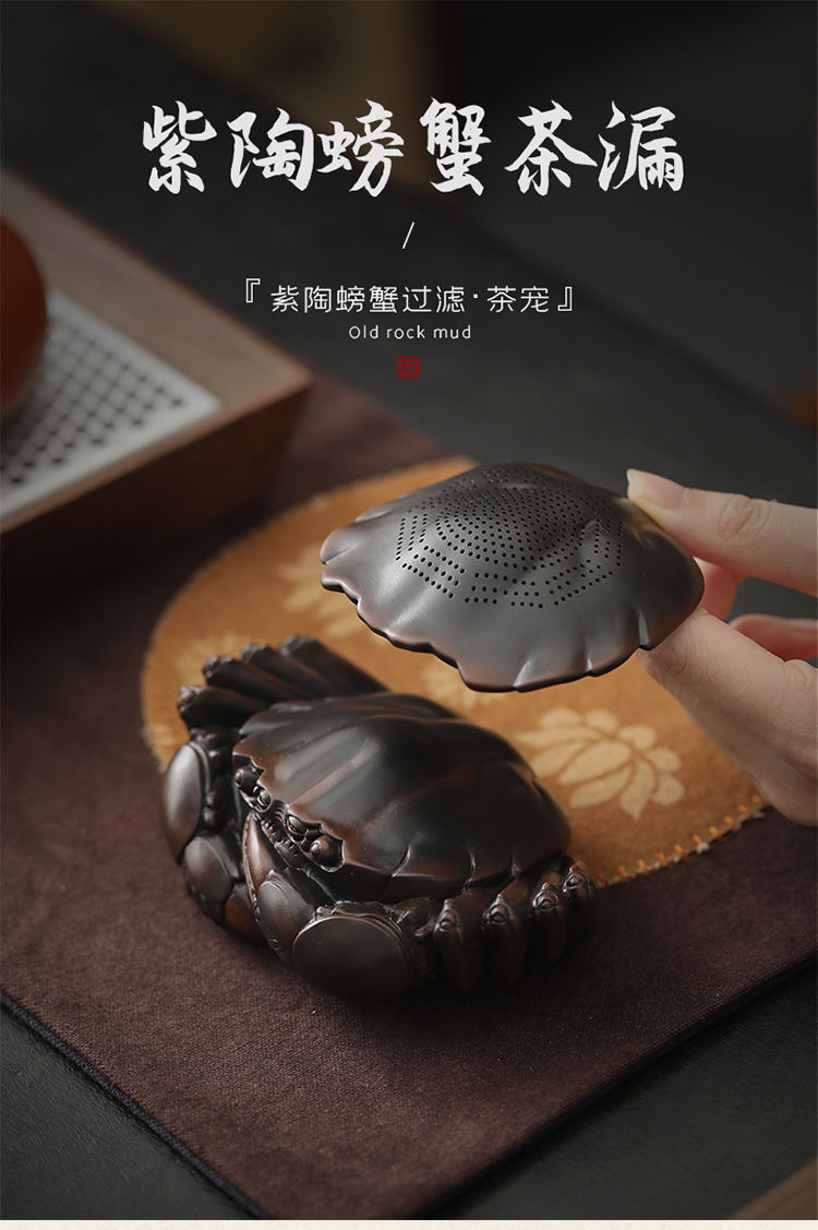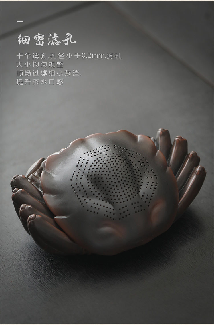 紫陶大号螃蟹茶漏网全陶瓷一体过滤组可养茶宠摆件家用茶叶过滤网
