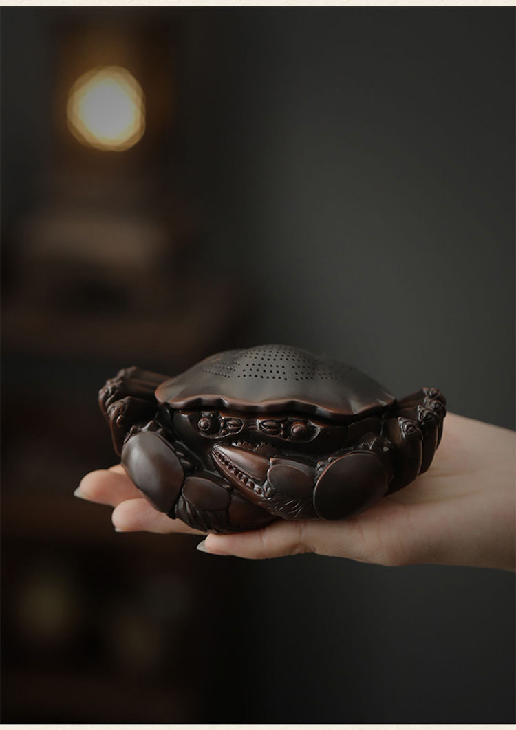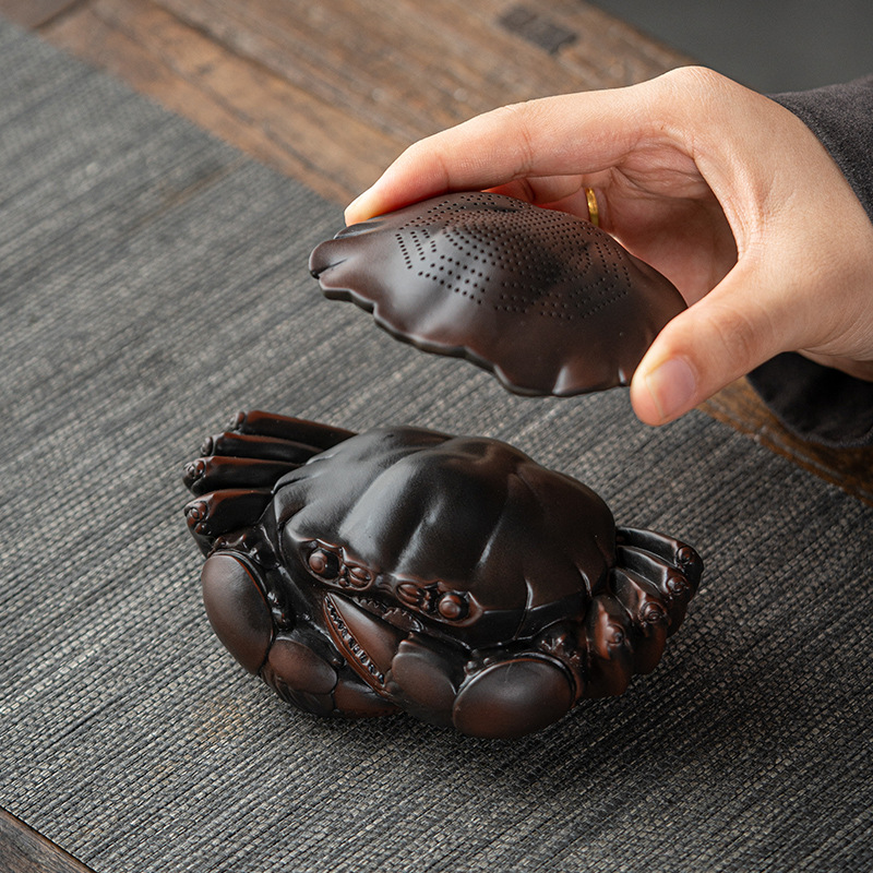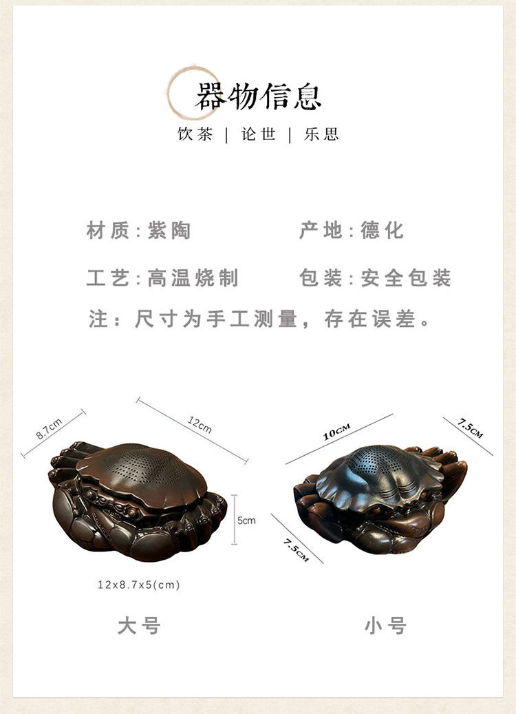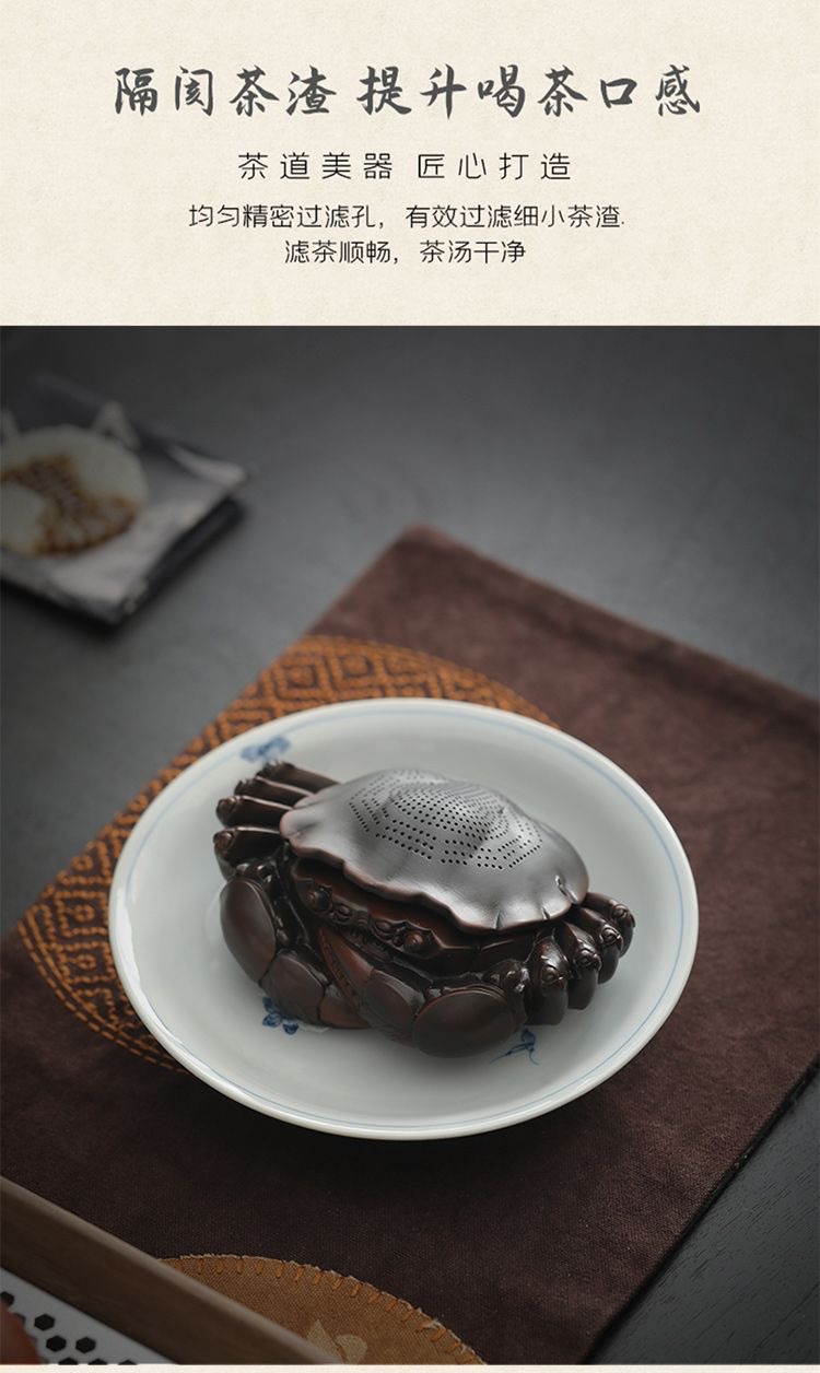 紫陶大号螃蟹茶漏网全陶瓷一体过滤组可养茶宠摆件家用茶叶过滤网