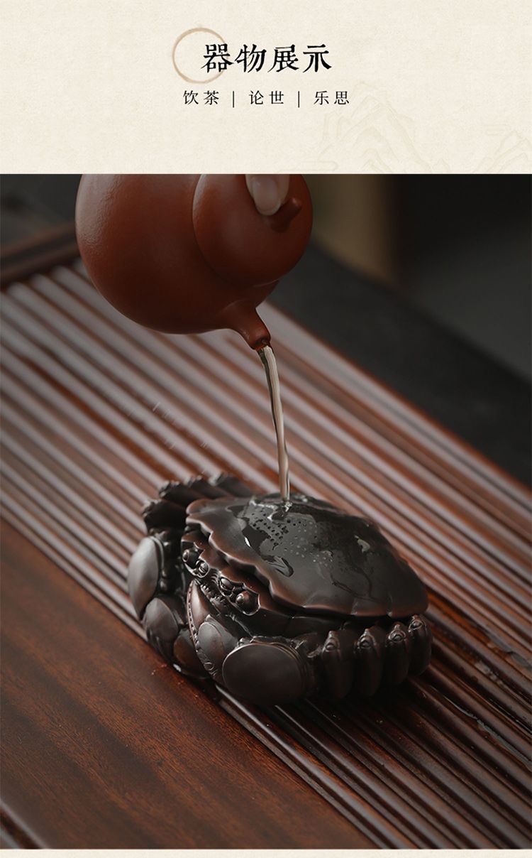 新款手工紫陶螃蟹茶宠家用桌上一体过滤器陶瓷茶桌摆件过滤组茶宠