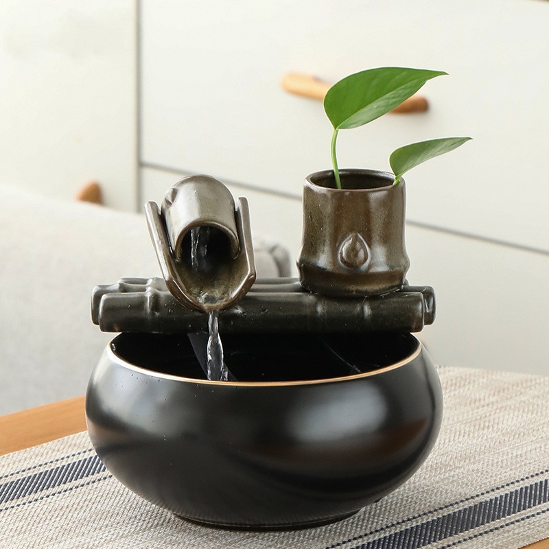 中国風の流れる水の富の装飾品、循環水セラミック水槽、富の噴水、禅の家のリビングルーム、茶卓の装飾