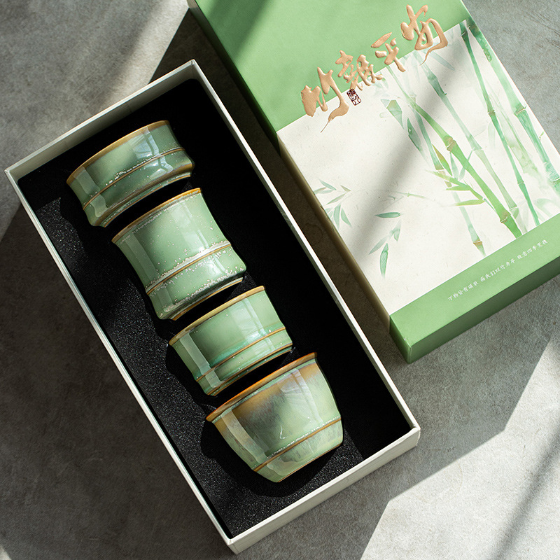 竹報平安セラミックグリーン竹マスターカップホームオフィスティーカップティーカップホリデーお祝いギフトティーセット