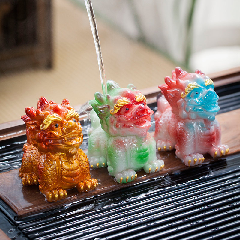 祥龙树脂茶道手工招财生肖创意茶玩茶桌茶台装饰礼品摆件茶宠变色