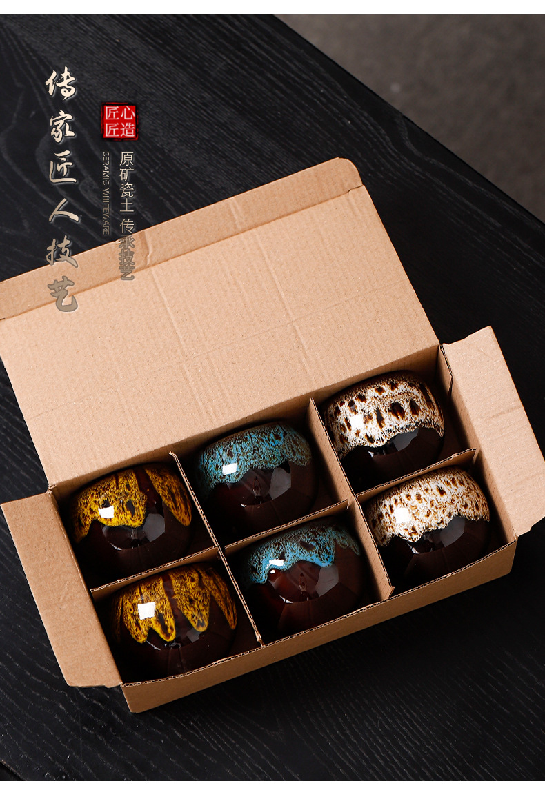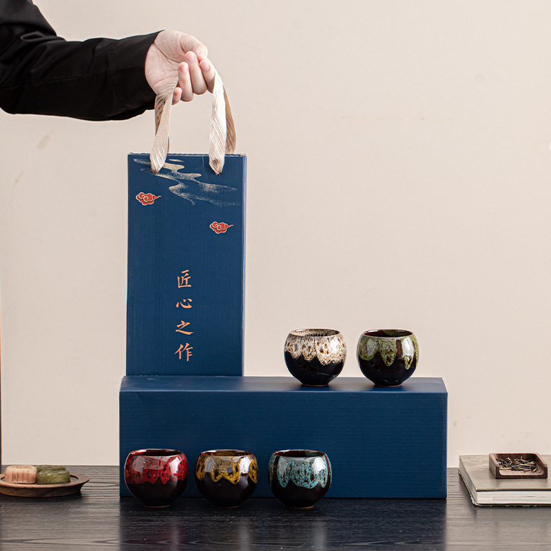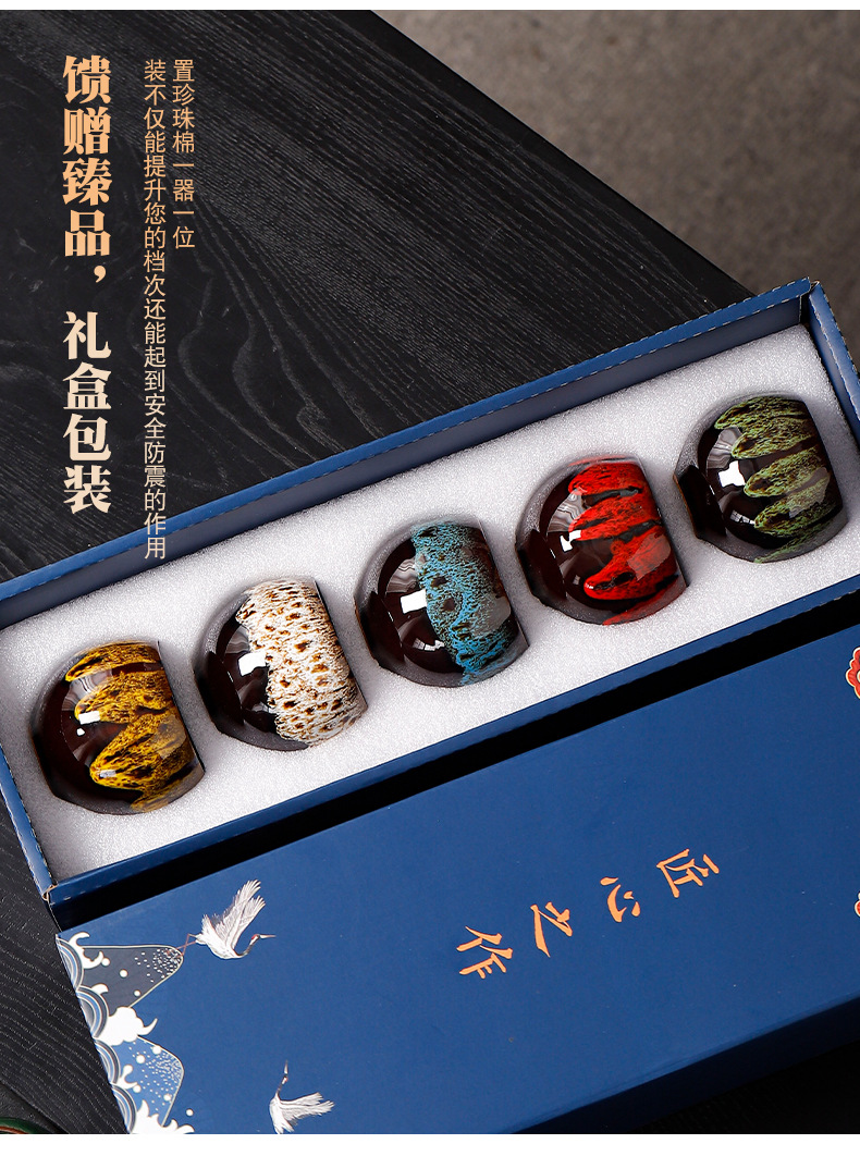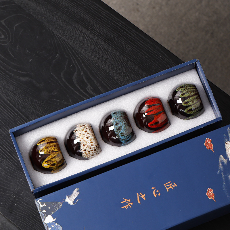 窑变五行杯功夫茶具小茶杯礼盒装 创意国潮商务礼品批发送客户