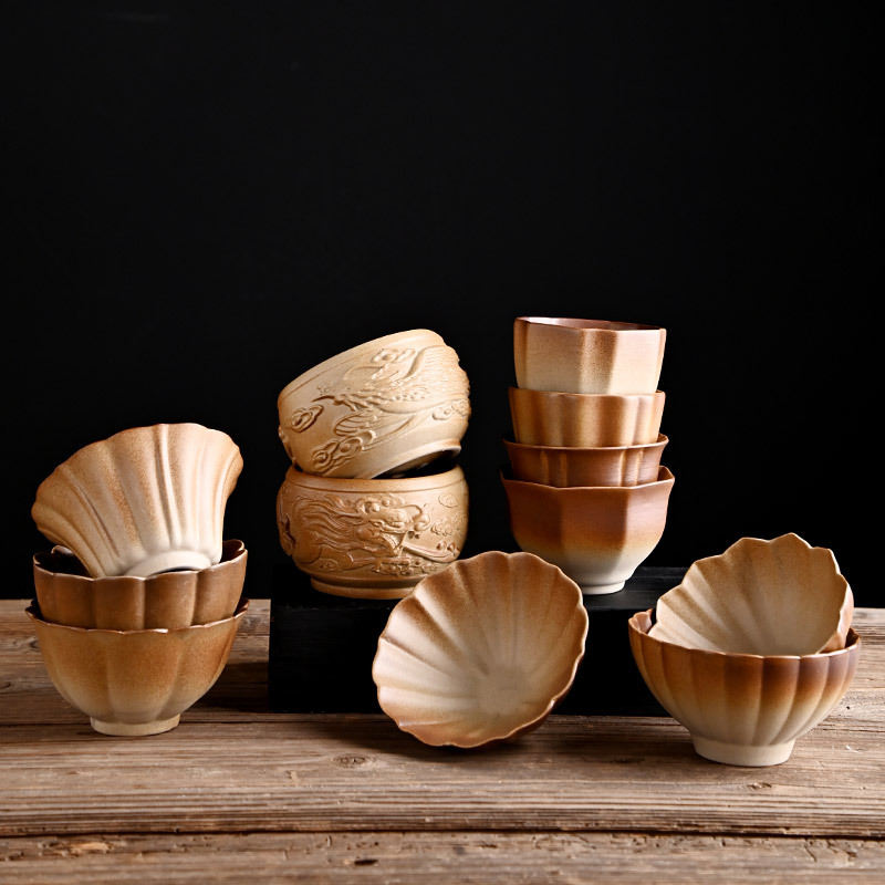 柴烧釉土陶粗陶功夫茶具斗笠杯 轻奢复古个人 茶杯喝茶主人杯批发
