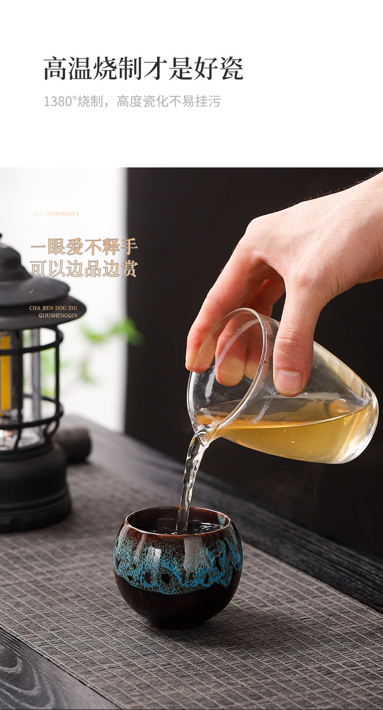 窑变五行杯陶瓷主人杯品茗杯子茶具茶杯套装天目釉建盏冰裂龙蛋杯