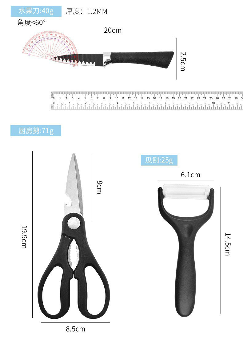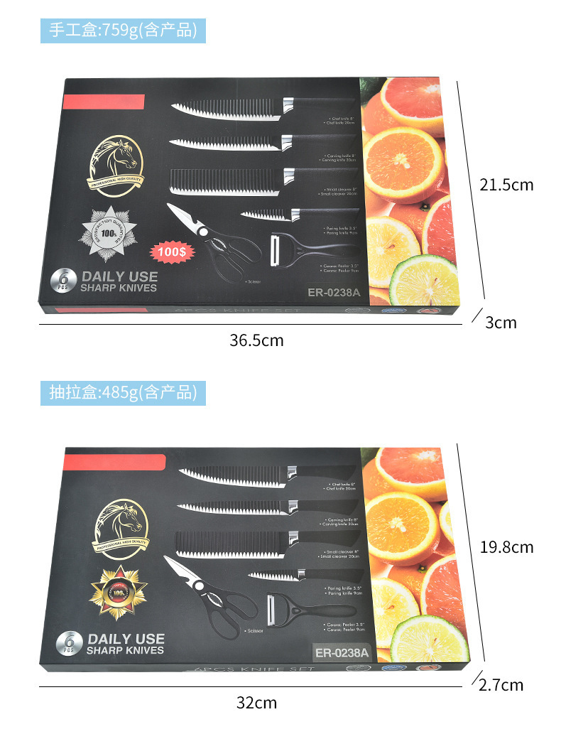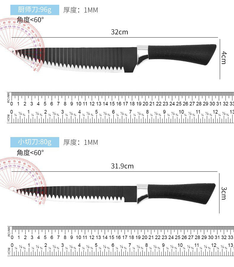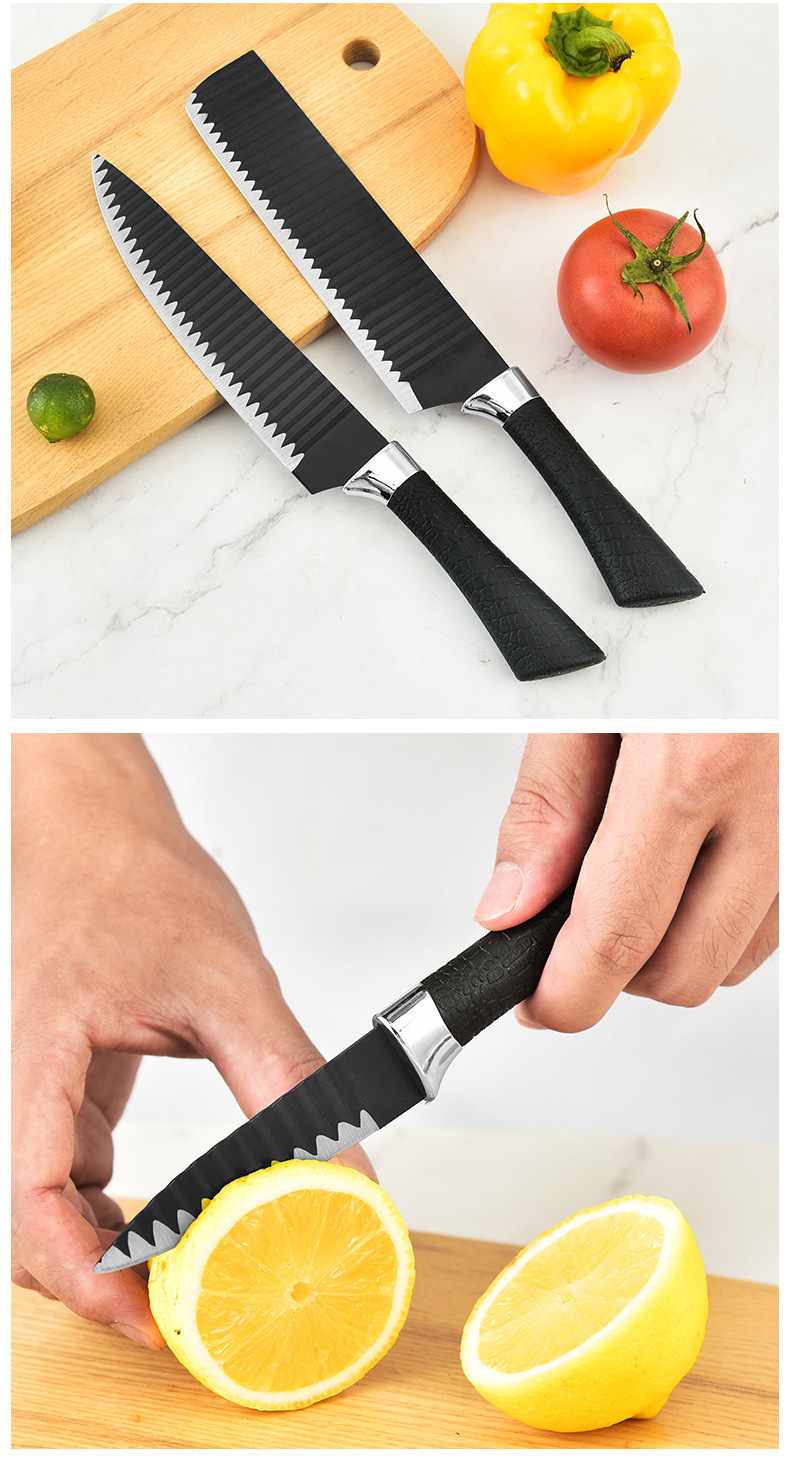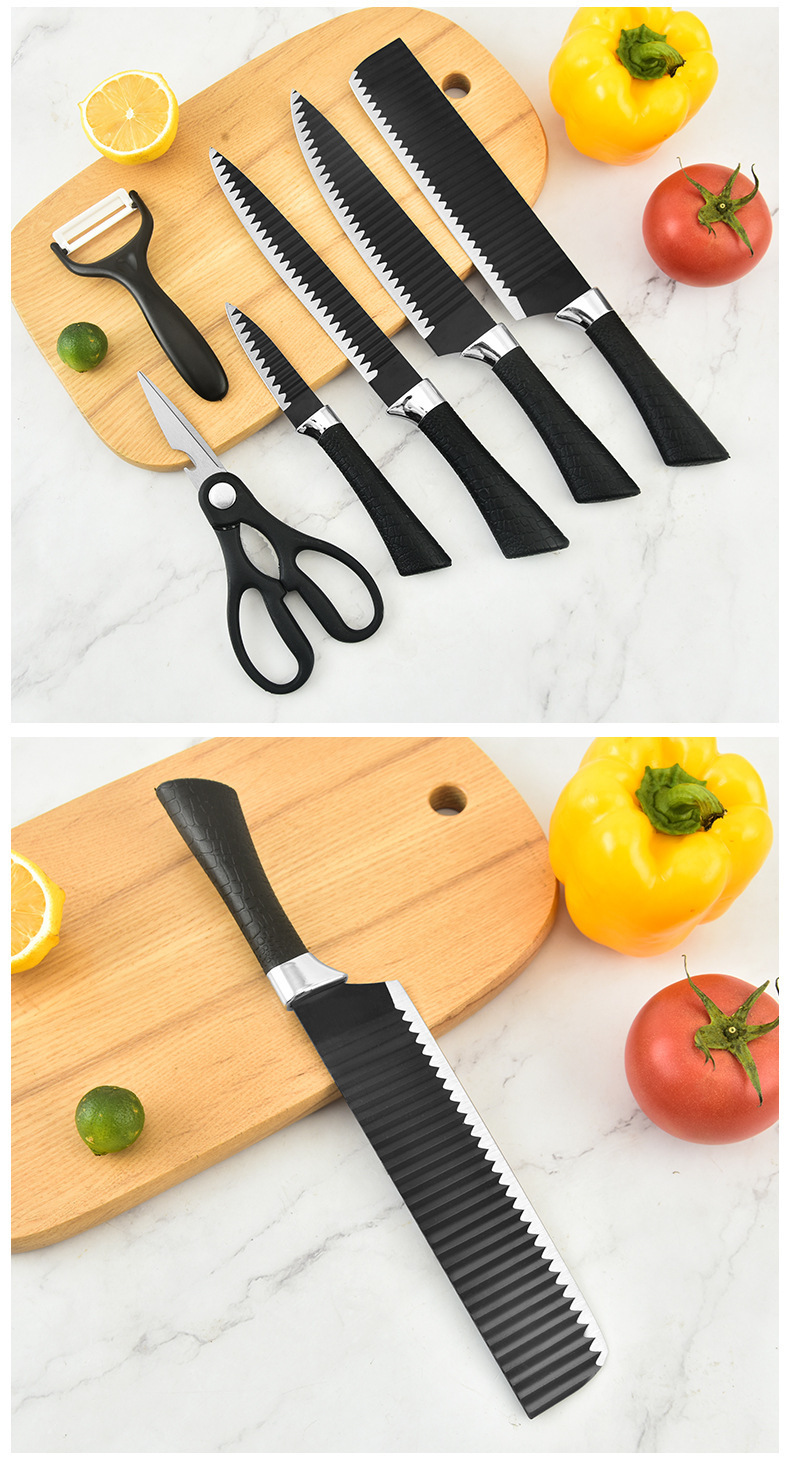 外贸热销厨房刀具套装238A黑波浪纹六件套装不锈钢菜刀切片刀现货