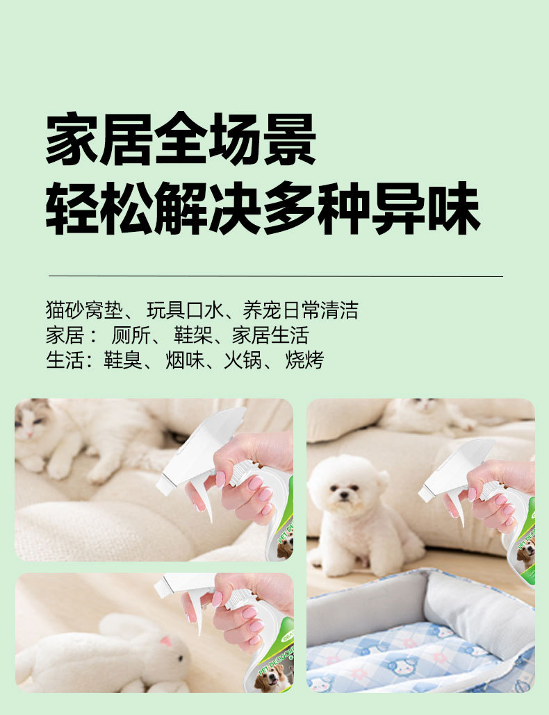 宠物除臭剂杀菌除螨猫狗去尿味去骚味喷雾安全无刺激猫砂狗窝除臭